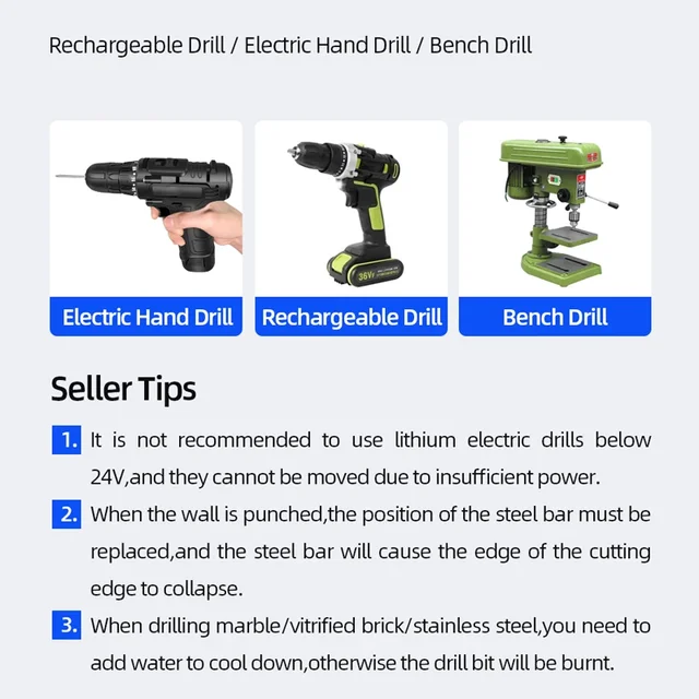 Drill diameter: 3mm/4mm / 5mm / 6mm / 8mm / 10mm / 12mm