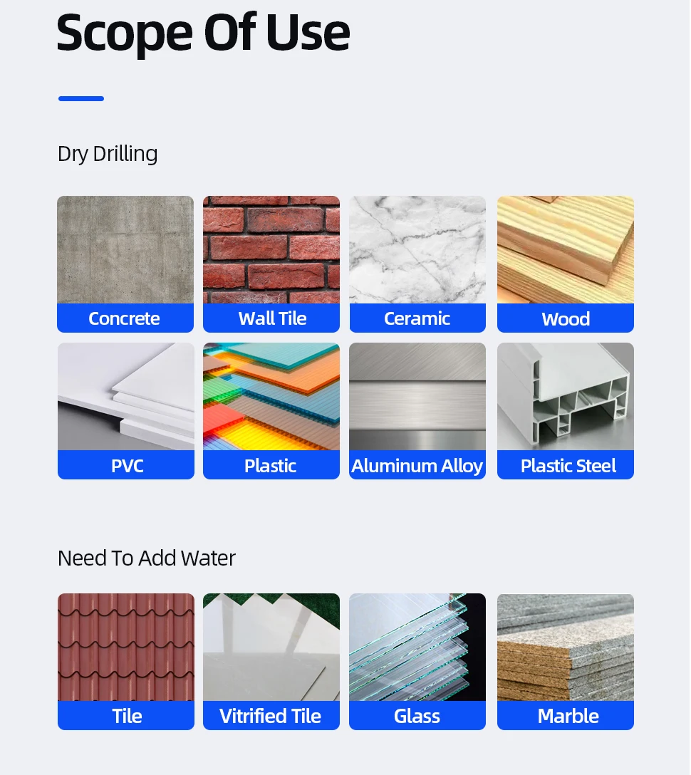 5. Suitable for Ceramics, granite, tiles, stone, wood, plastic,concrete wall to drilling hole