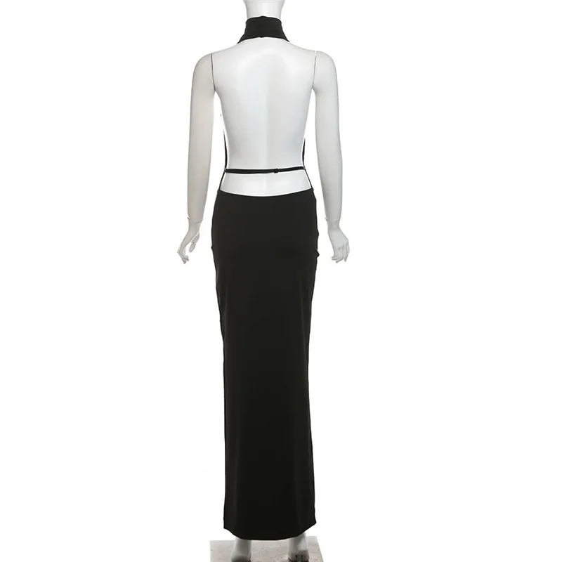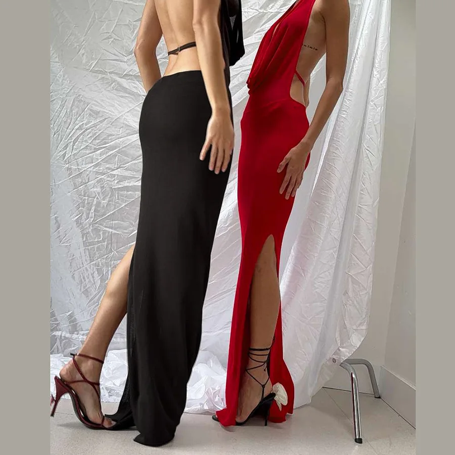 Leosoxs Backless Hollow Dress Women One Shoulder Irregular Pleated Solid Tassel Patchwork Midnight Clubwear Party Vestidos