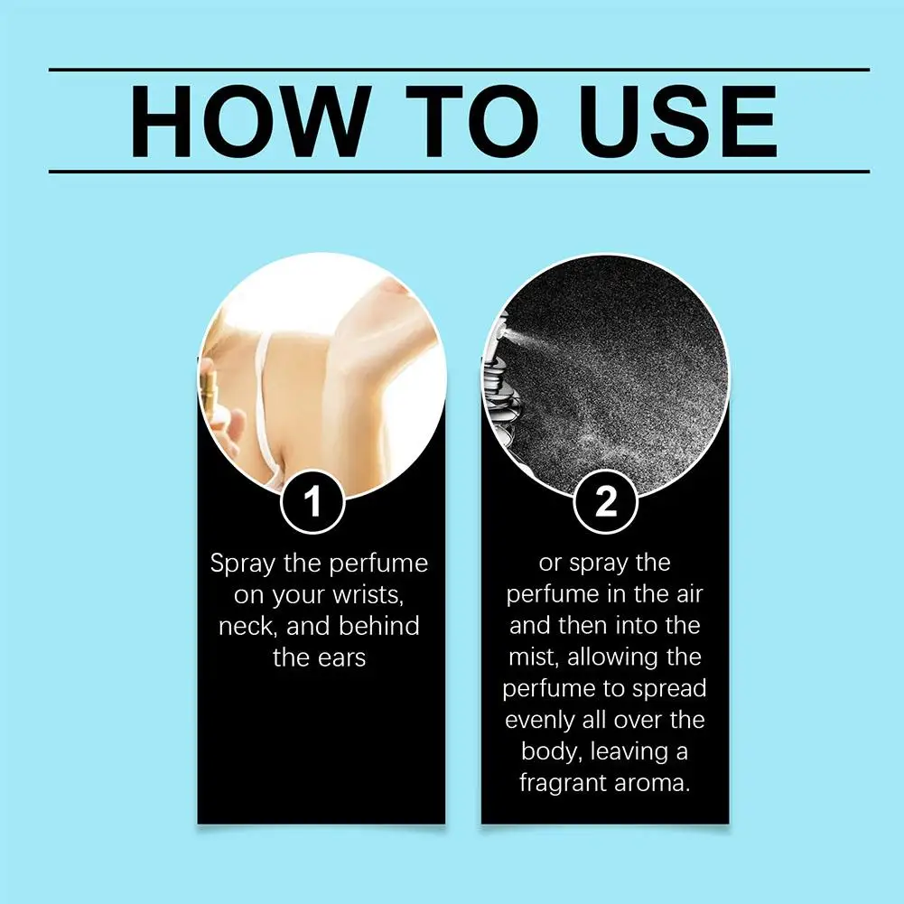 Spray perfume: Aim the bottle mouth at the skin, press the nozzle, and evenly spray the perfume on the neck, wrists, behind the ears and other parts that are prone to emit fragrance.