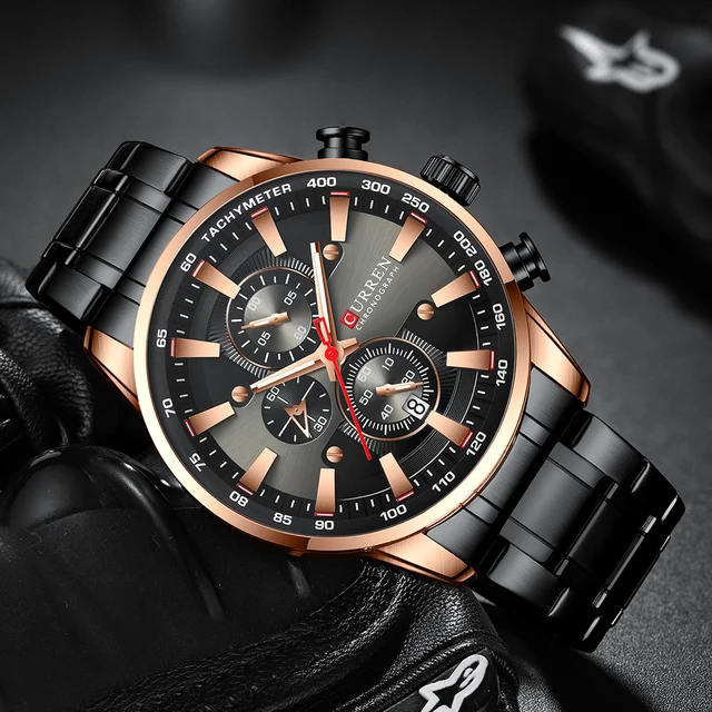 CURREN Man Watches Luxury Sporty Chronograph Wristwatches for Men Quartz Stainless Steel Band Clock Luminous Hands