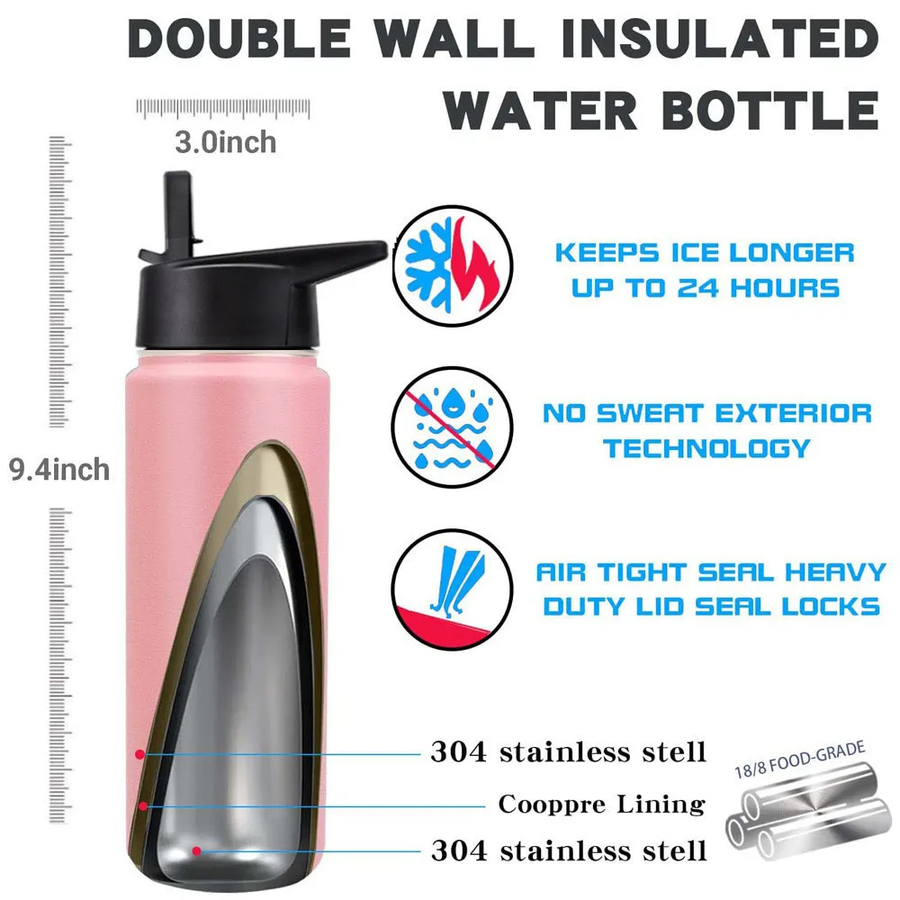 2022 New 18oz Water Bottle Flask – Stainless Steel & Vacuum Insulated Straw Lid Leak-Proof Water Bottle