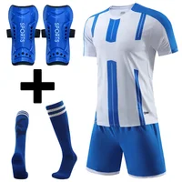 Custom Men Kids Football Jersey Suit Quick Dry Breathable Club School Soccer Team Training Uniforms Football Shin Pads and Socks