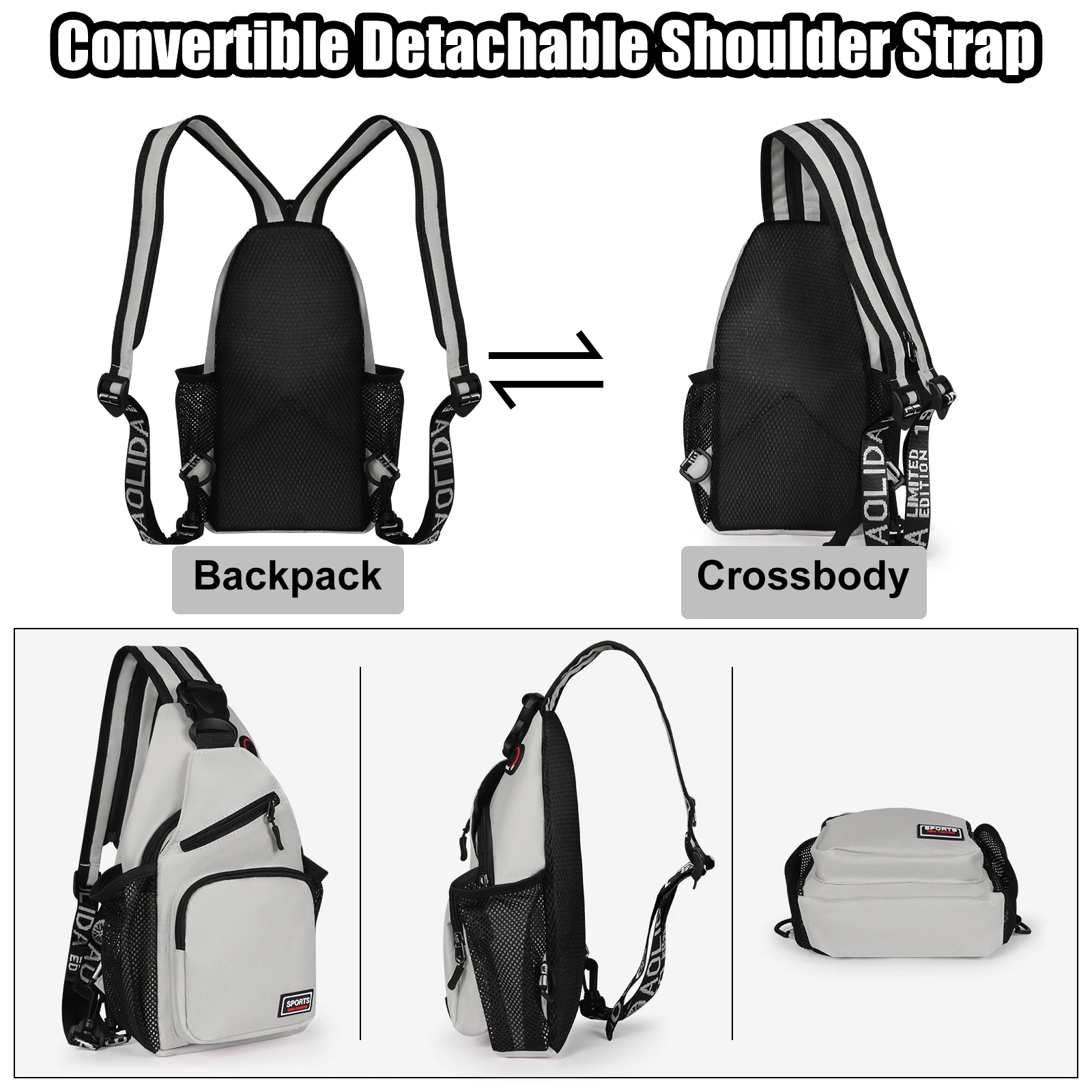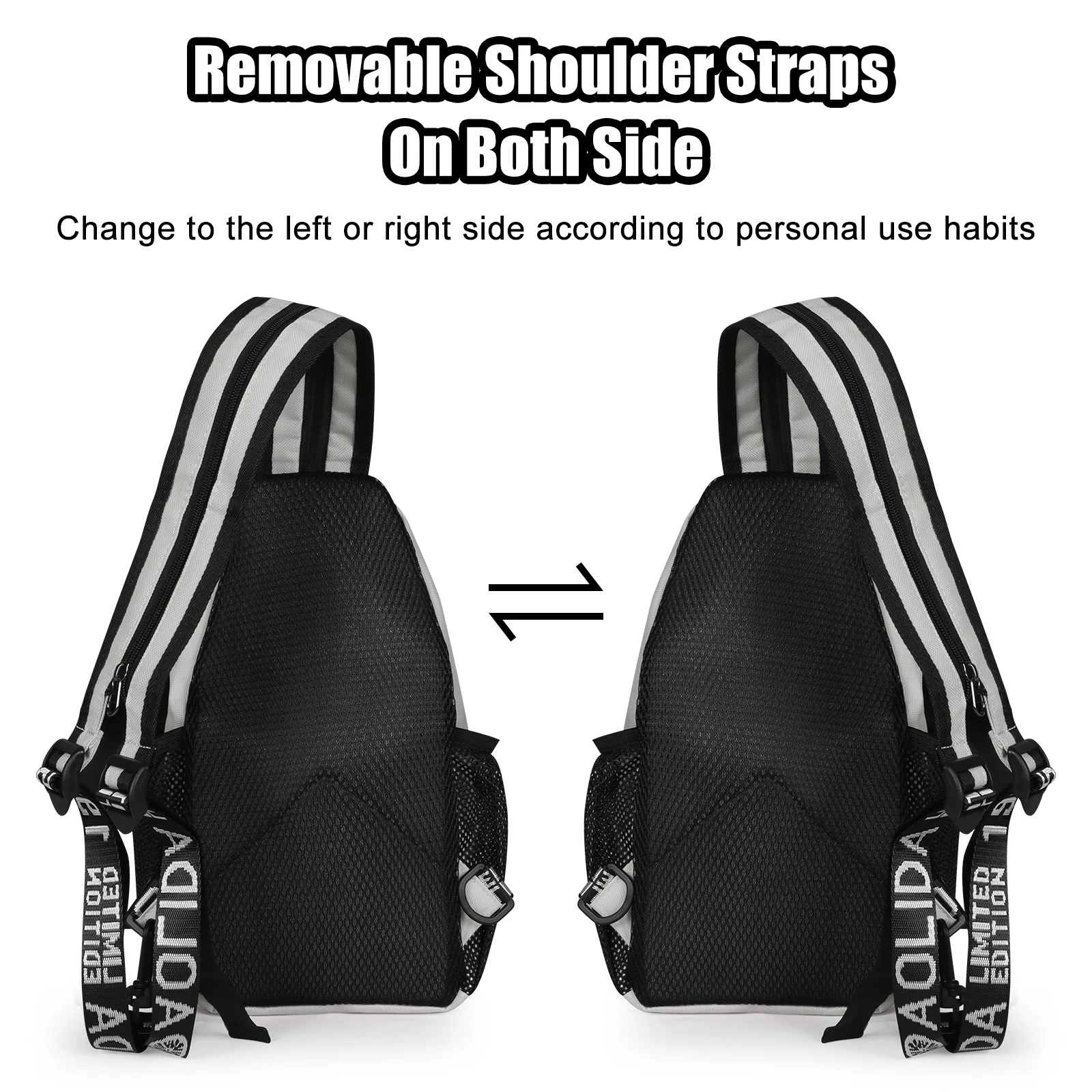 🔄 Multi-Position Wear – Wear as chest bag, shoulder bag, or sling backpack