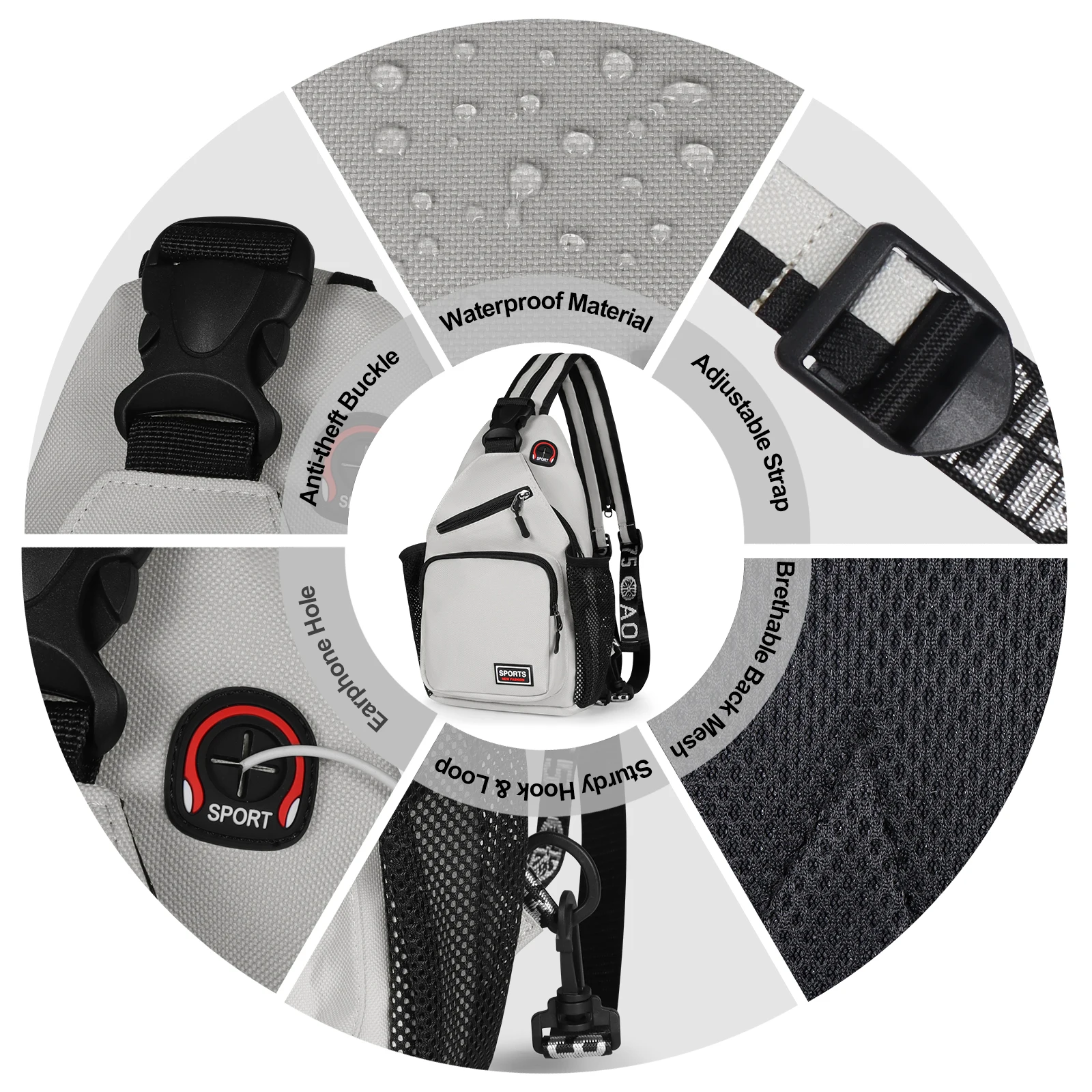 Unisex Crossbody Sling Backpack – Multi-Purpose Chest Bag with USB Charging Port & Headphone Hole