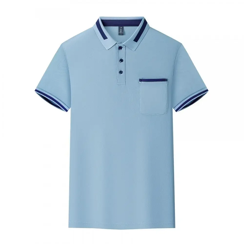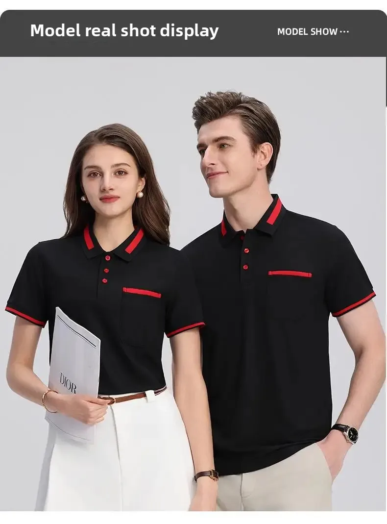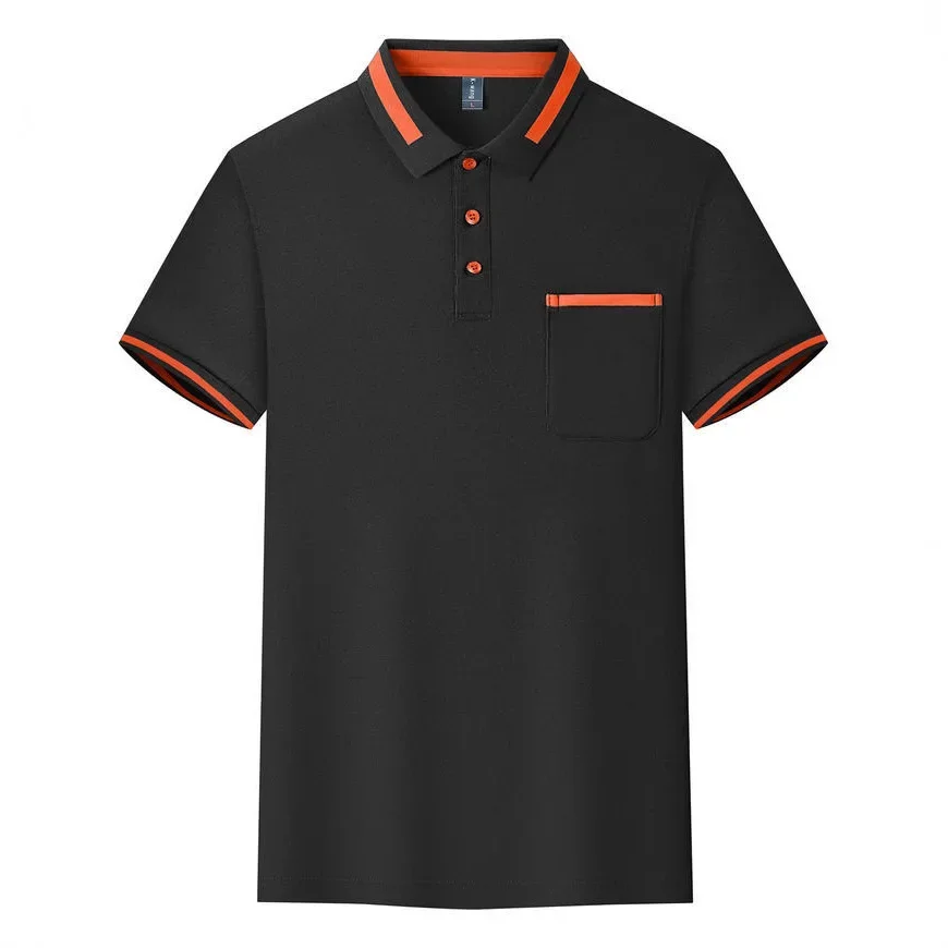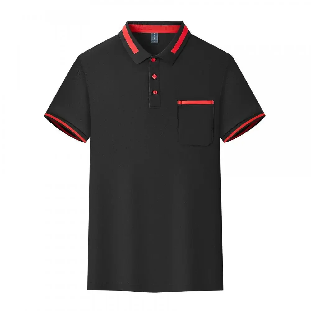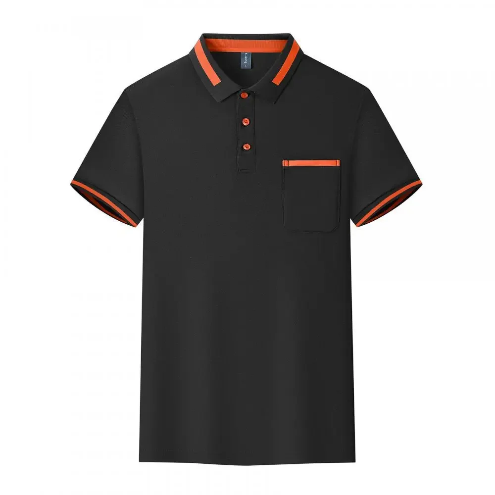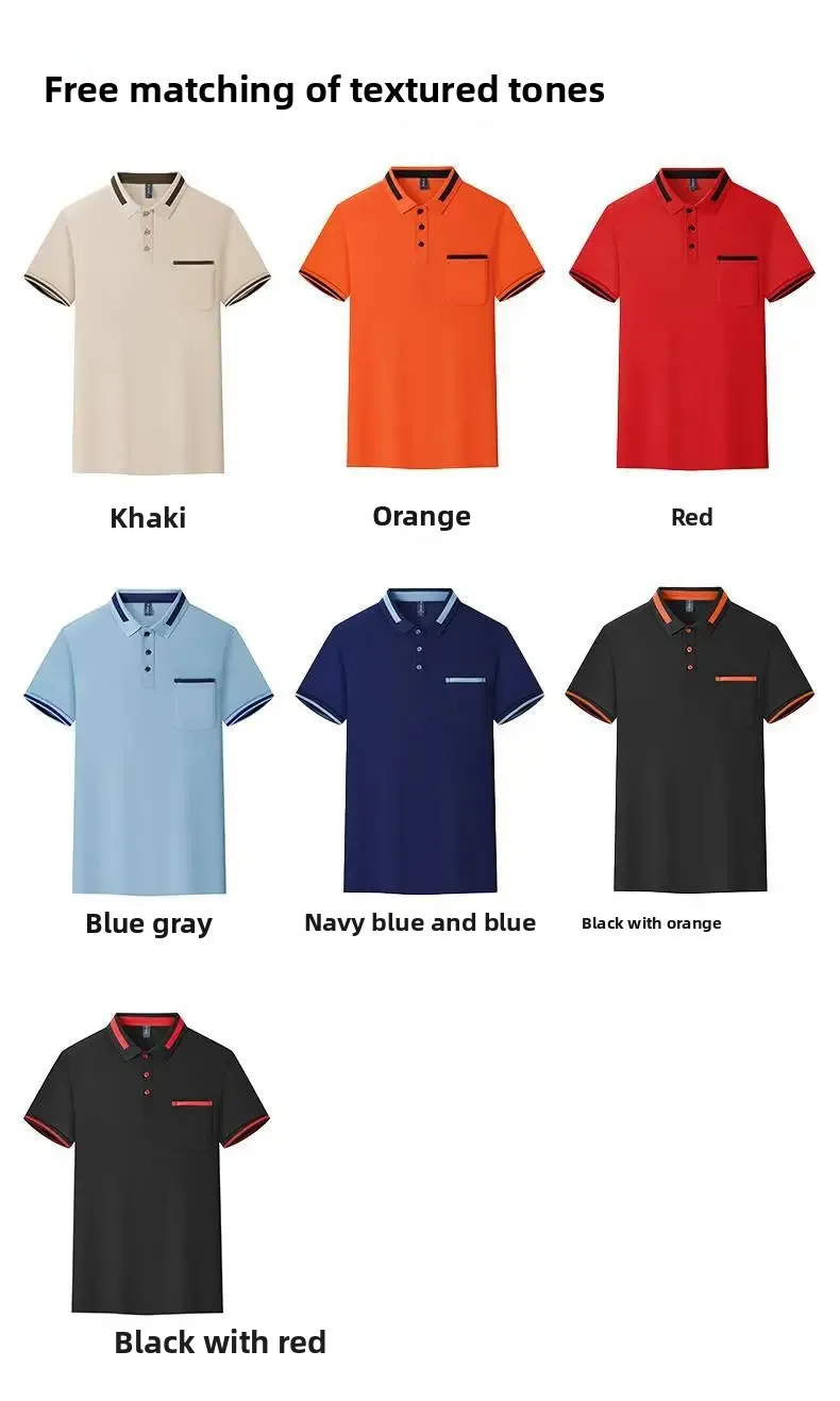 Customizable Men's Short Sleeve Polo Shirt with Pocket Color Block Collar T-Shirt Work Uniform Summer New Style Logo Printed