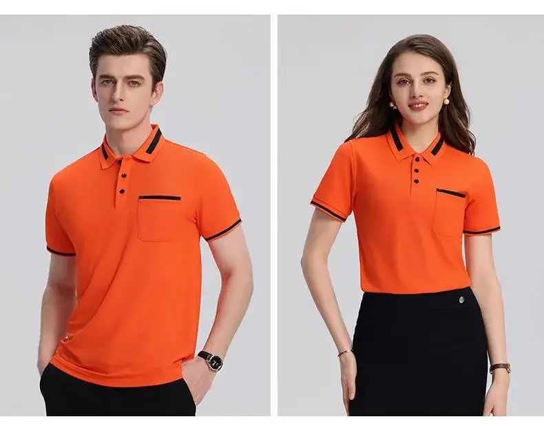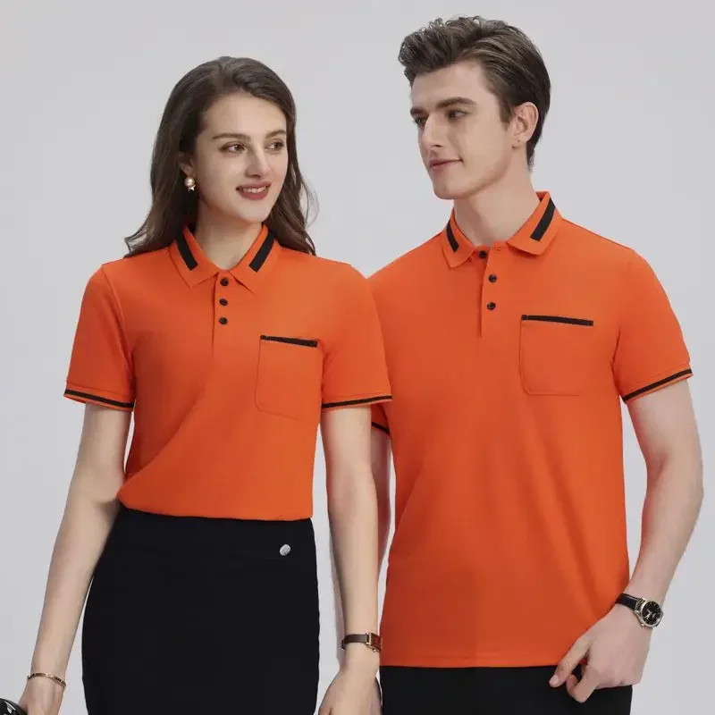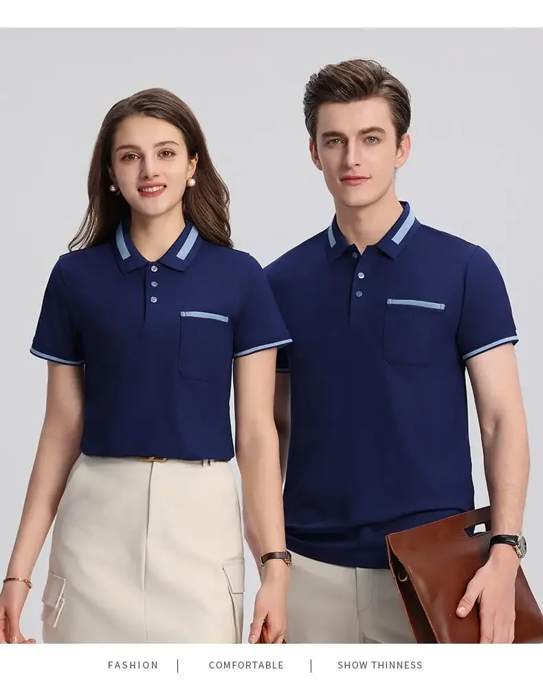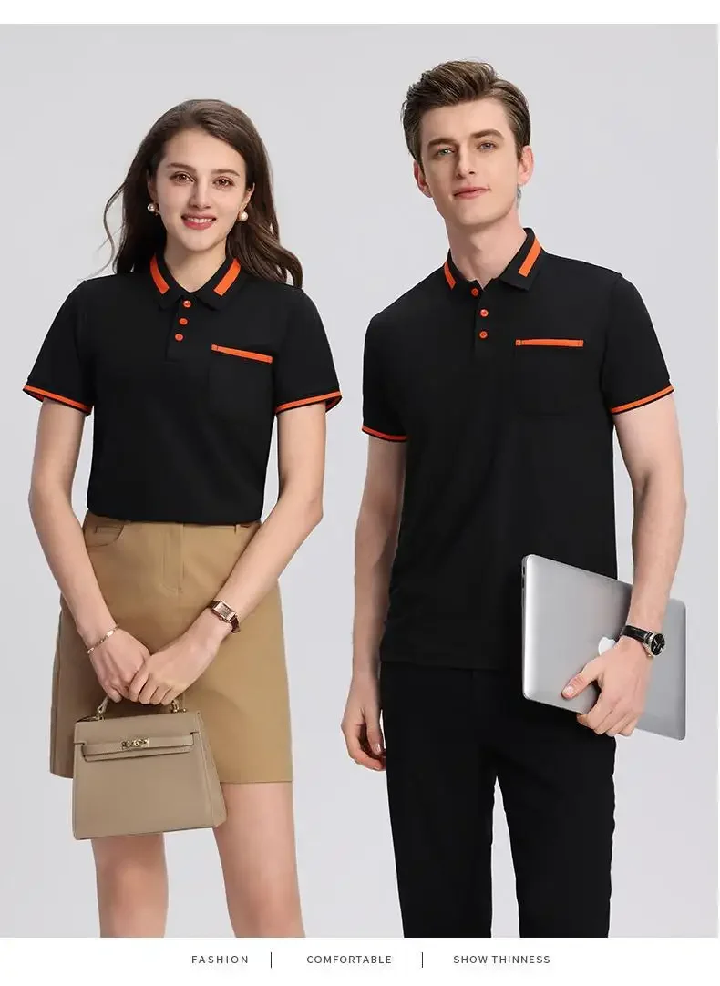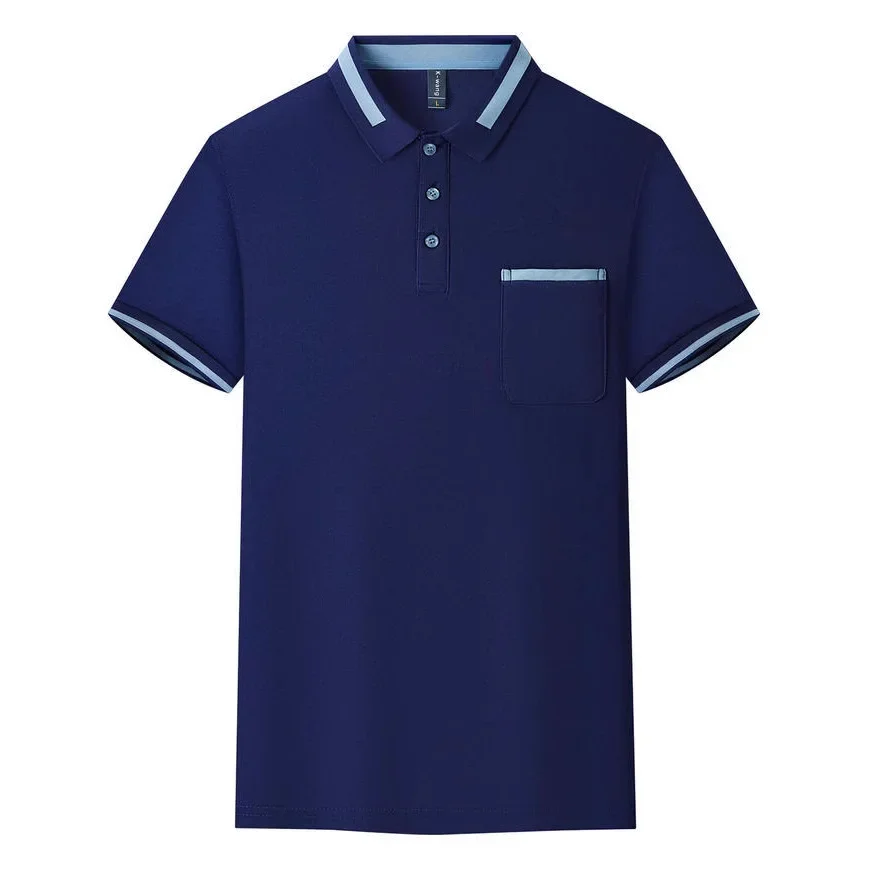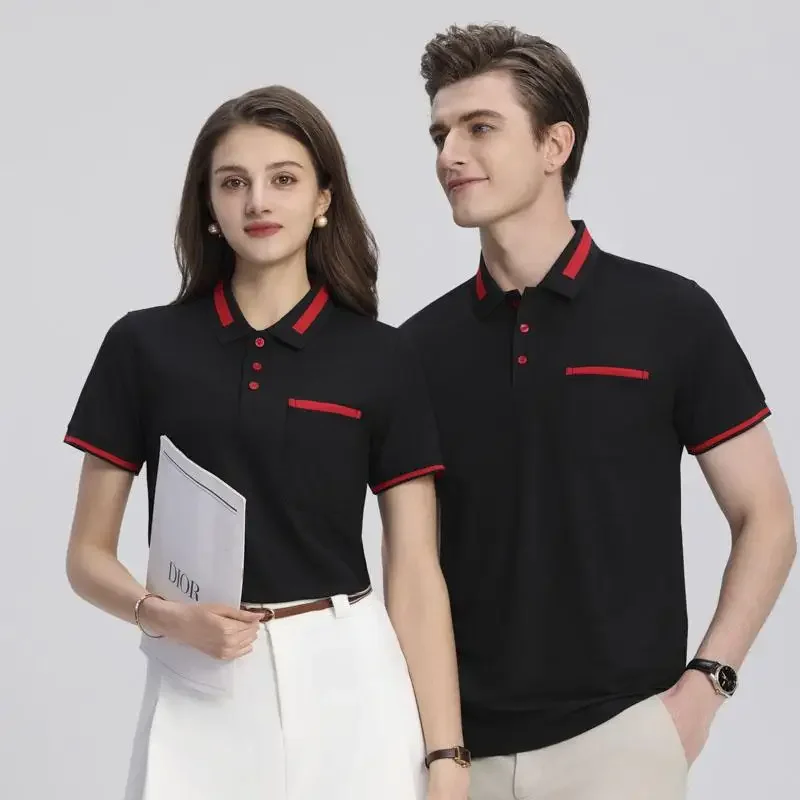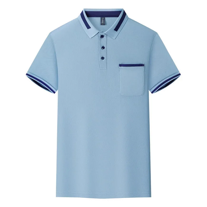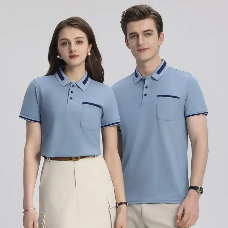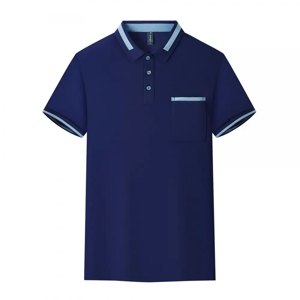 Customizable Men's Short Sleeve Polo Shirt with Pocket Color Block Collar T-Shirt Work Uniform Summer New Style Logo Printed