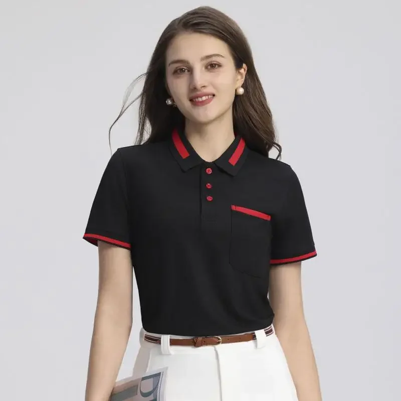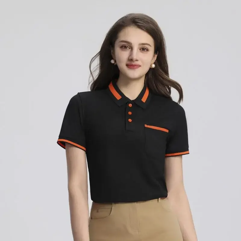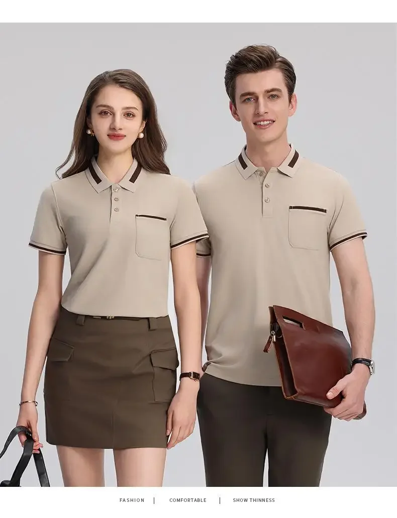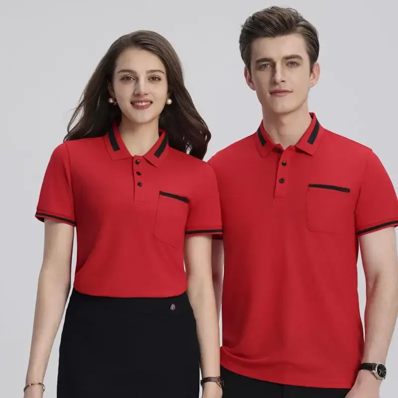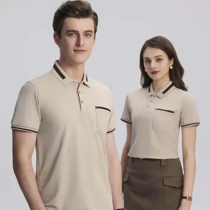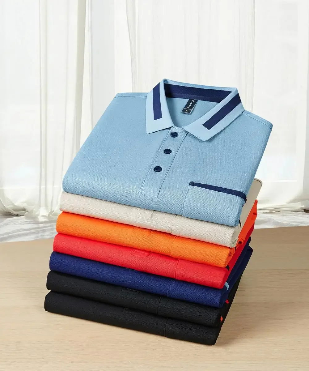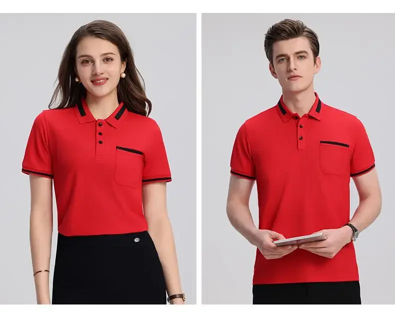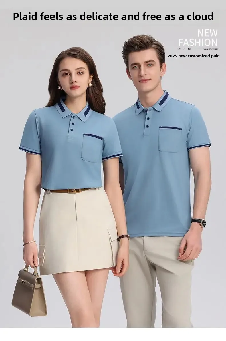 Customizable Men's Short Sleeve Polo Shirt with Pocket Color Block Collar T-Shirt Work Uniform Summer New Style Logo Printed
