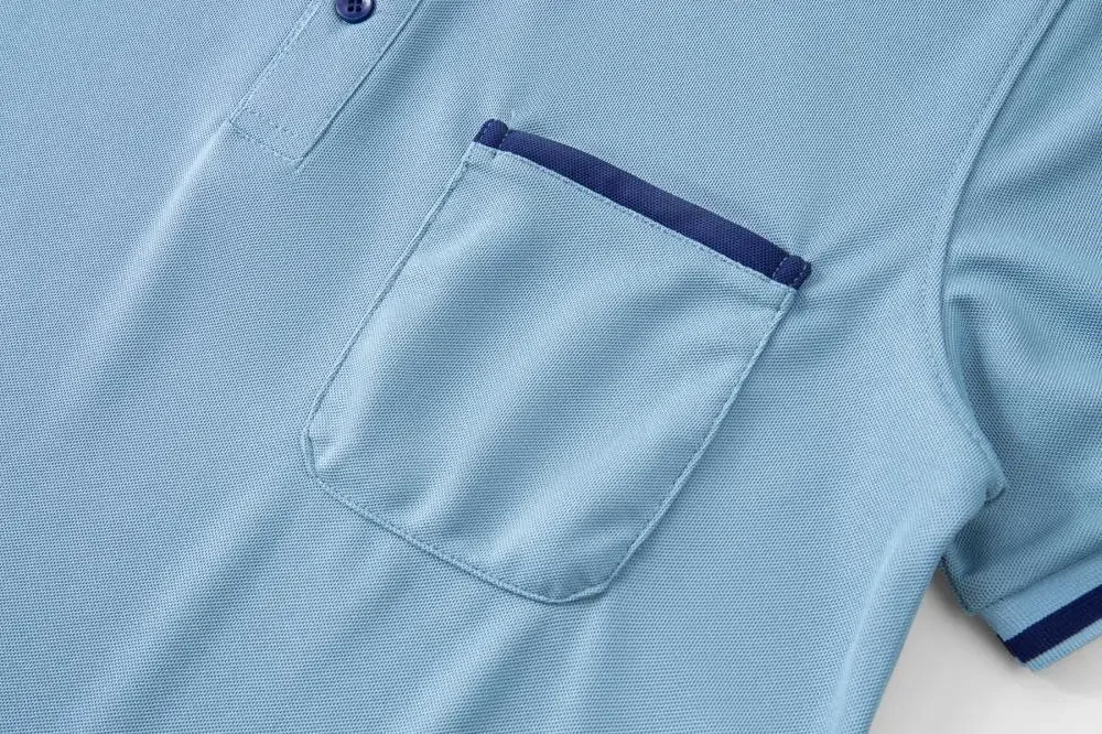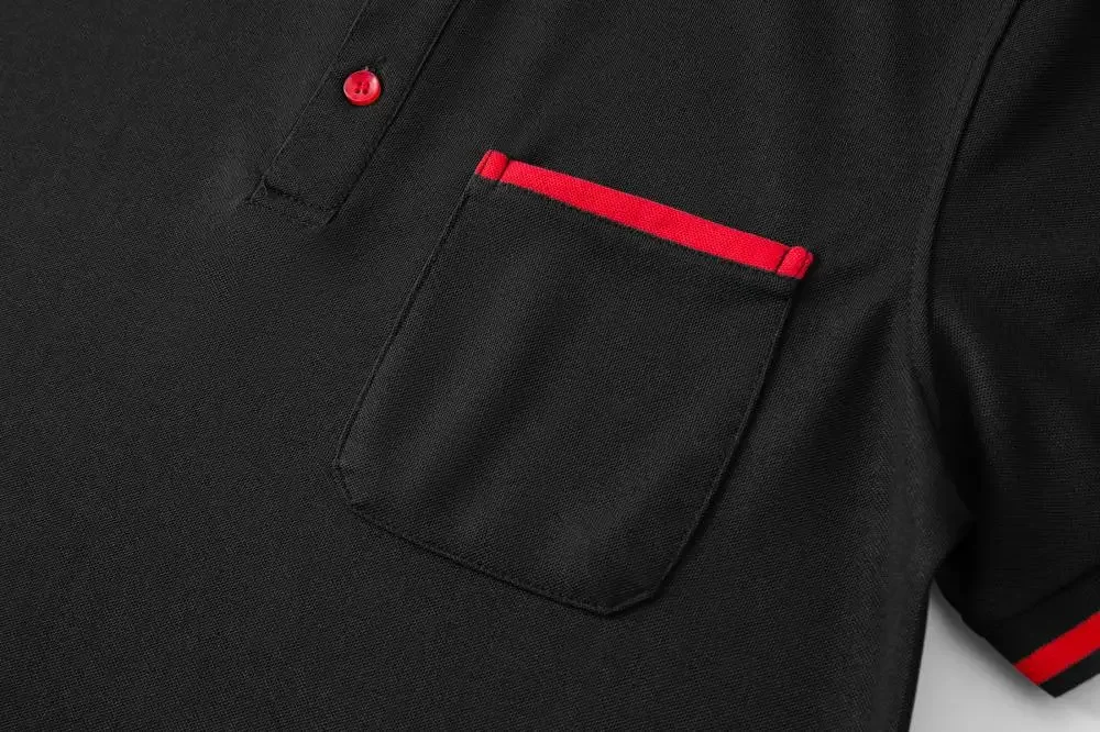 Customizable Men’s Short Sleeve Polo Shirt with Pocket Color Block Collar T-Shirt Work Uniform