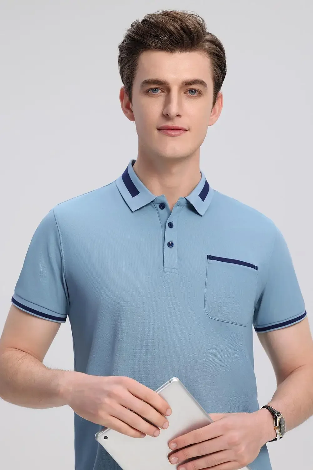 • Versatile Style : With its contrast collar and pocket detail, this polo shirt adds a touch of sophistication to any casual outfit.