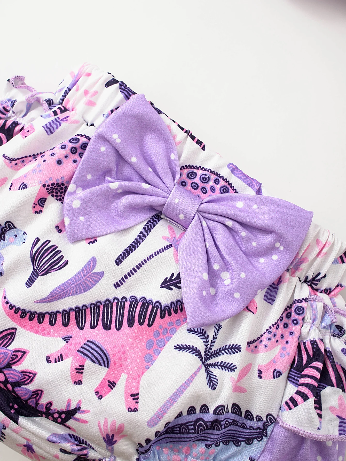 This 3-piece set includes a romper, shorts, and headband, perfect for various occasions.