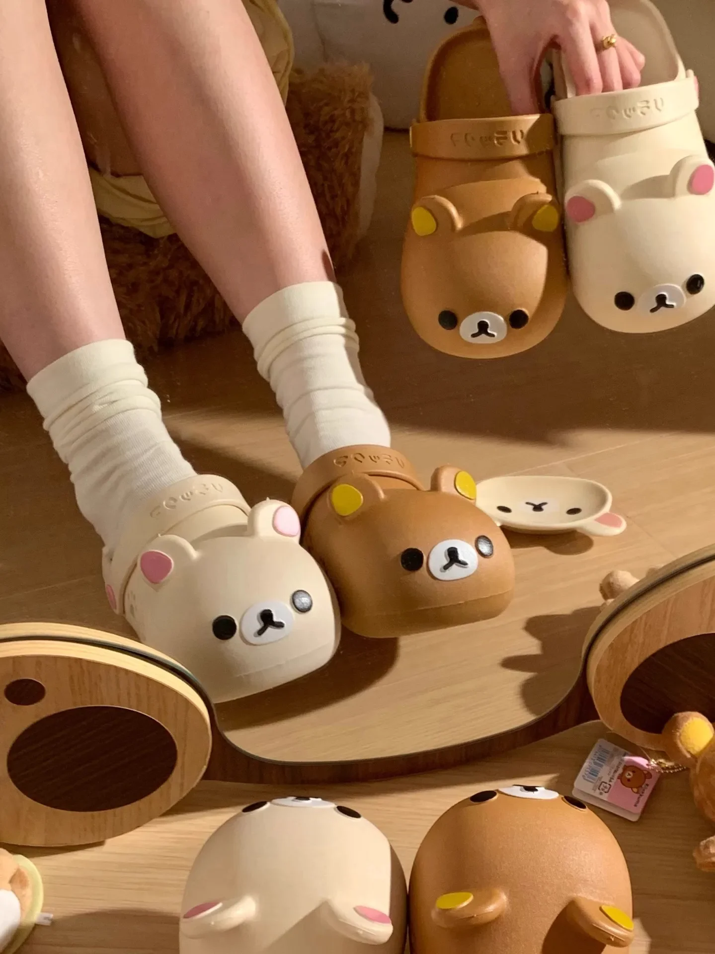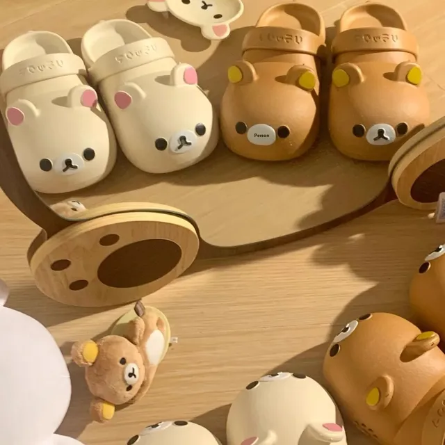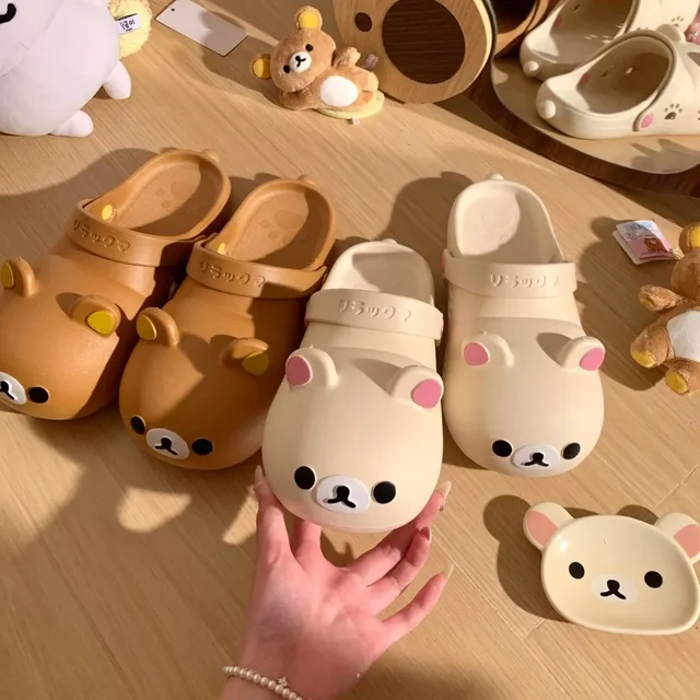 Cute Bear Hole Shoes Summer Anti-Slip Odor Control Women’s Outdoor Wear Head Cover Sandals Comfortable