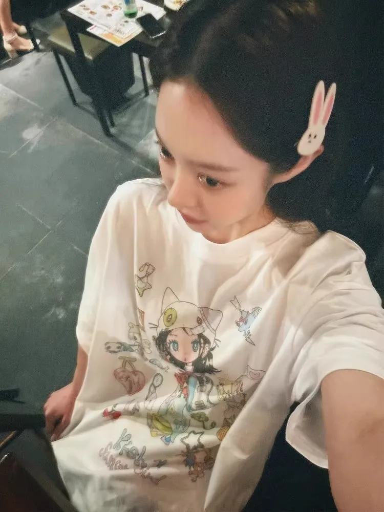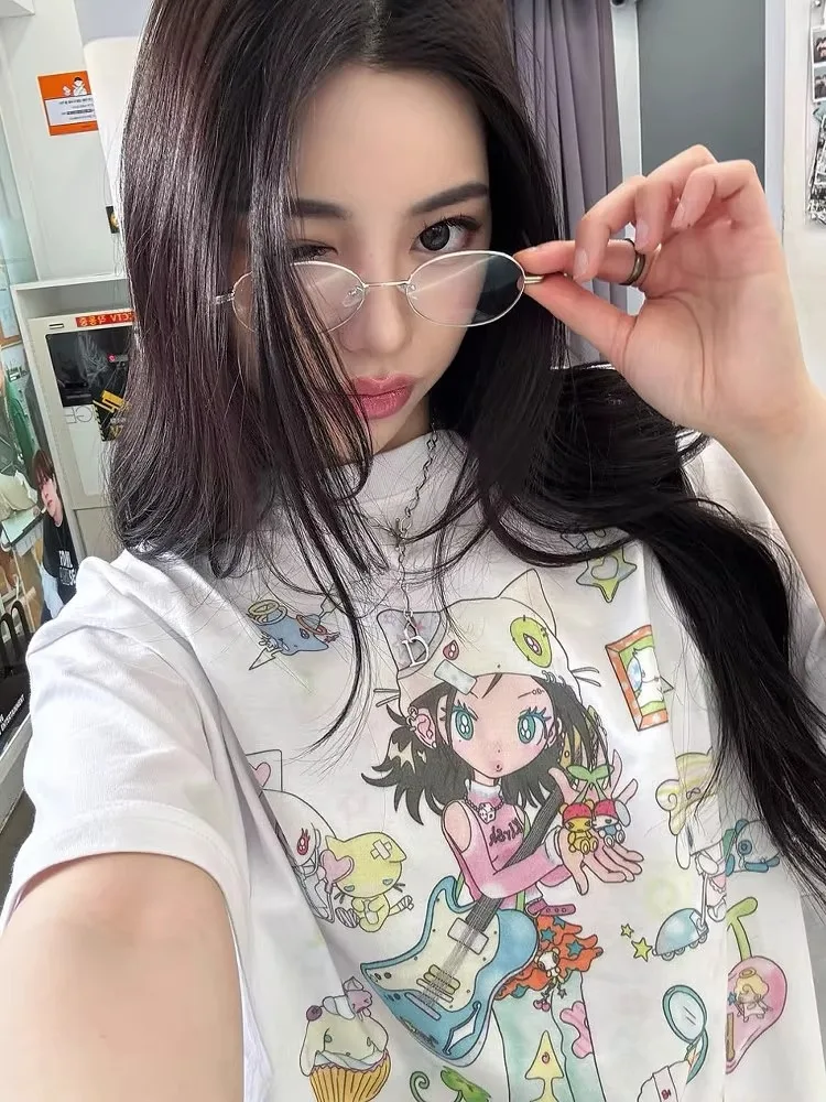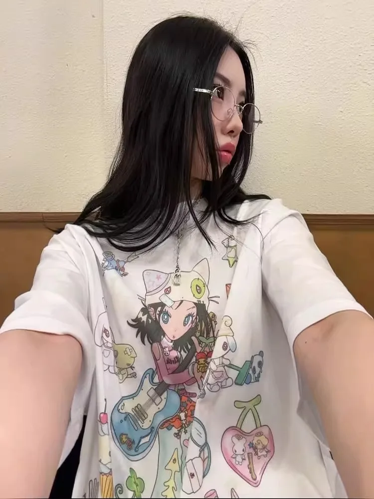 Featuring a cute cartoon anime design, this T-shirt adds a touch of whimsy to your wardrobe.