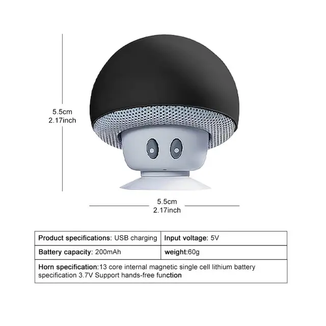 Cute Cartoon Bluetooth Speaker Mushroom Shape Upgraded Suction Cup Mini Speaker Dustproof Birthday Gift for Kids Women