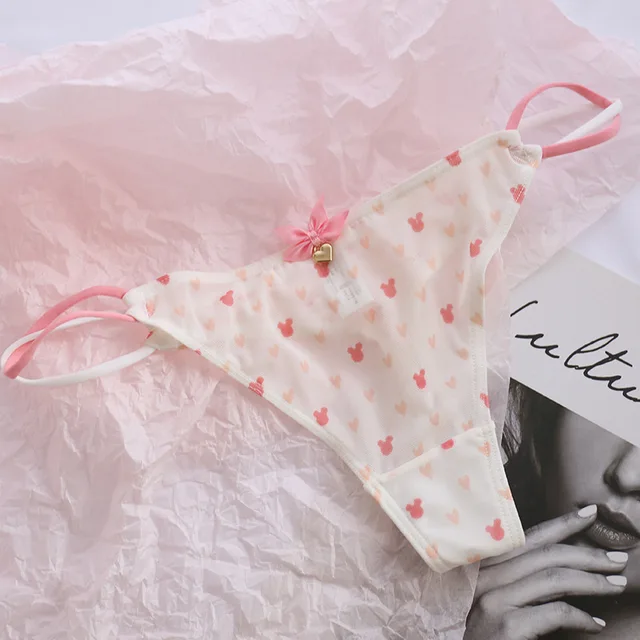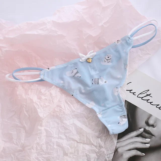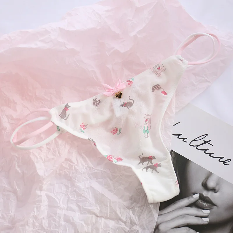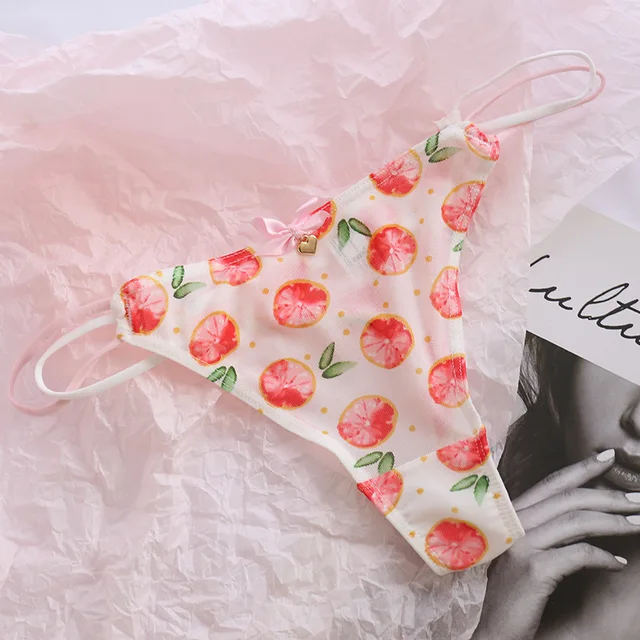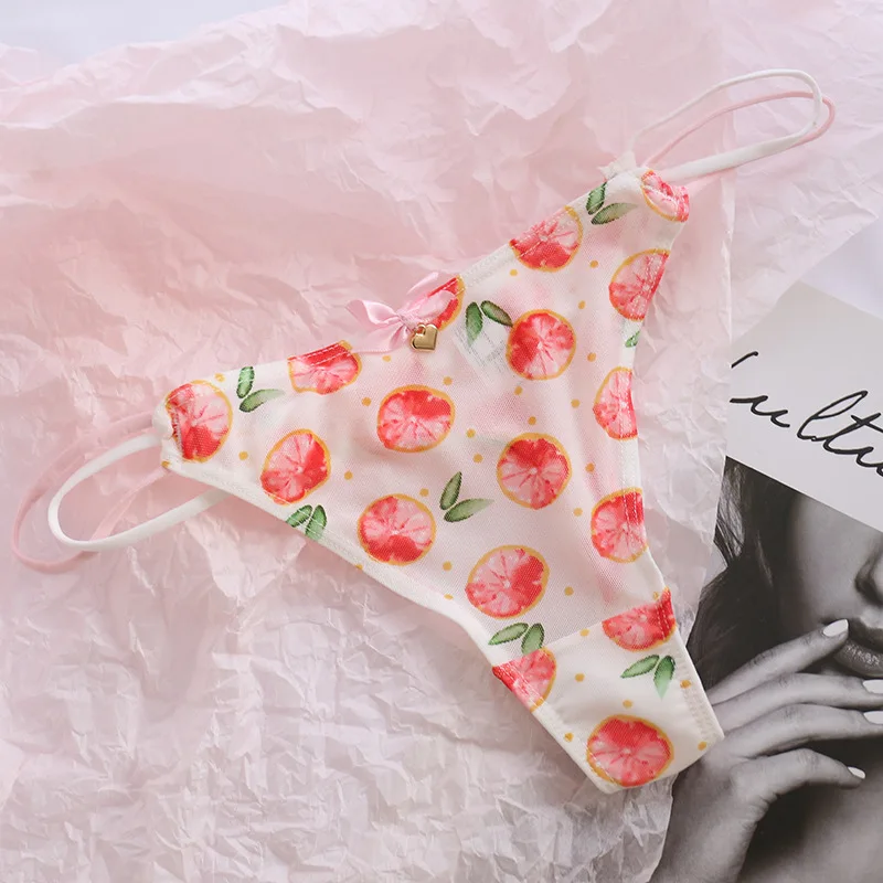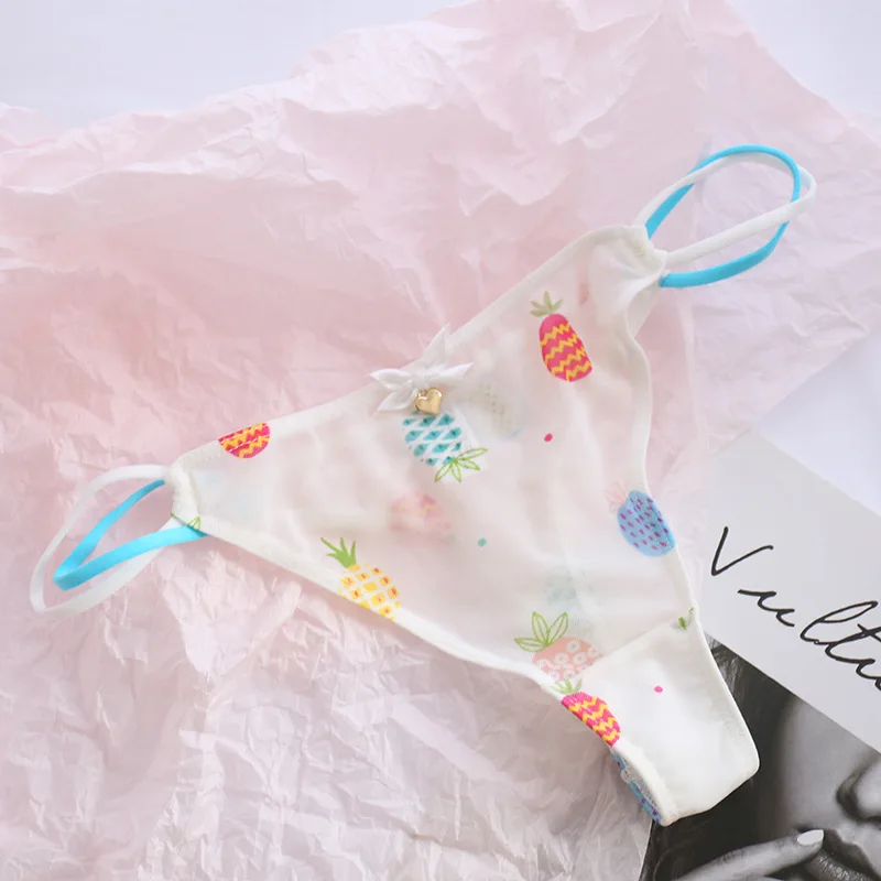 Cute Girls Ladies Mesh T-Back T-String Thongs Sexy Panties Transparent Strawberry Cherry Low-Waisted