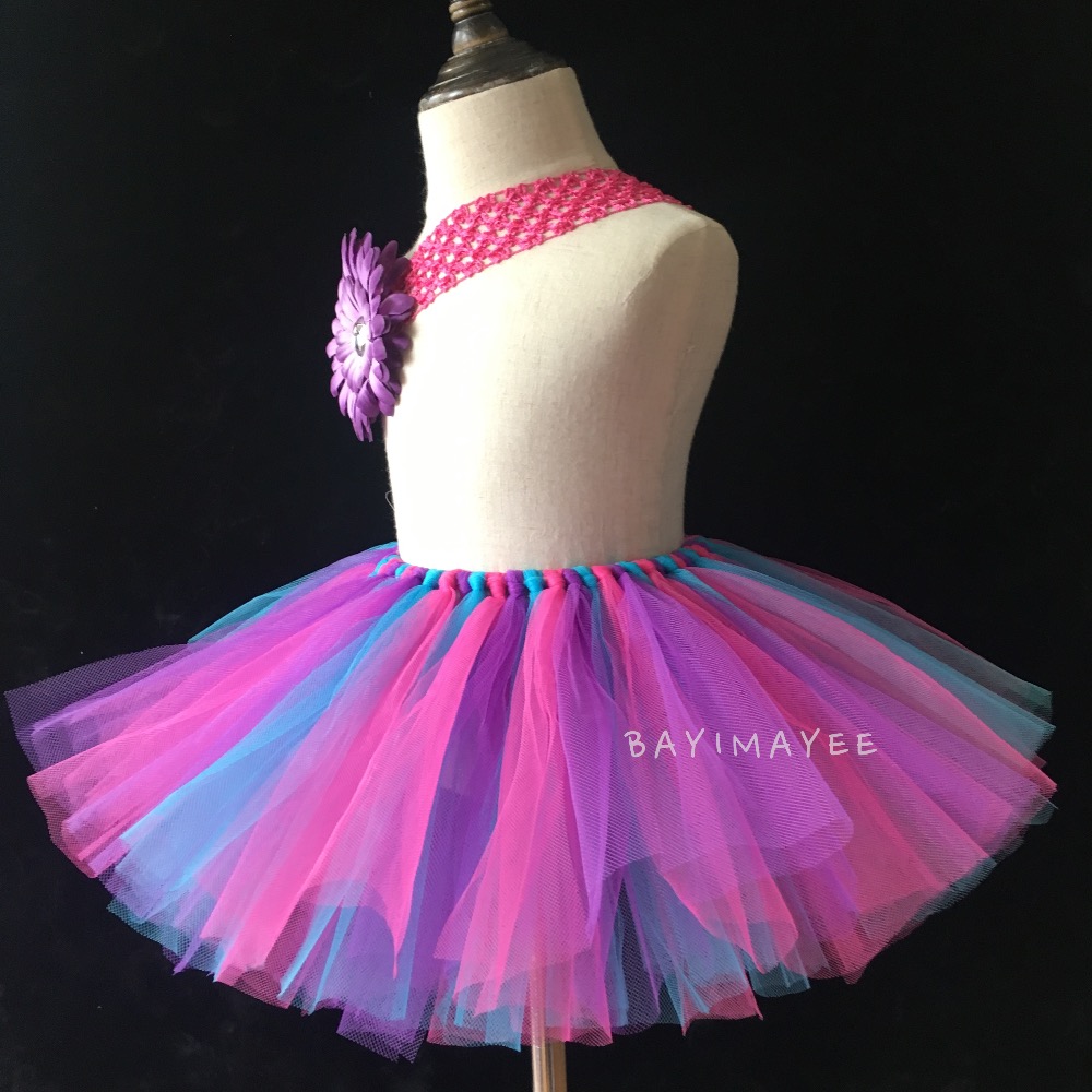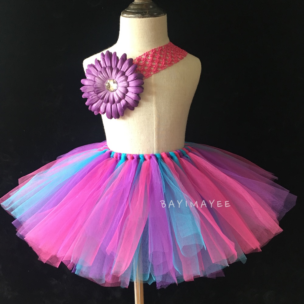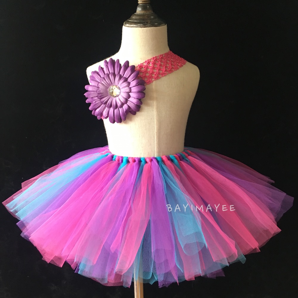 100% Handmade Multcolors Tutu Skirts Girl’s Fluffy Tulle Tutus with flower headbands