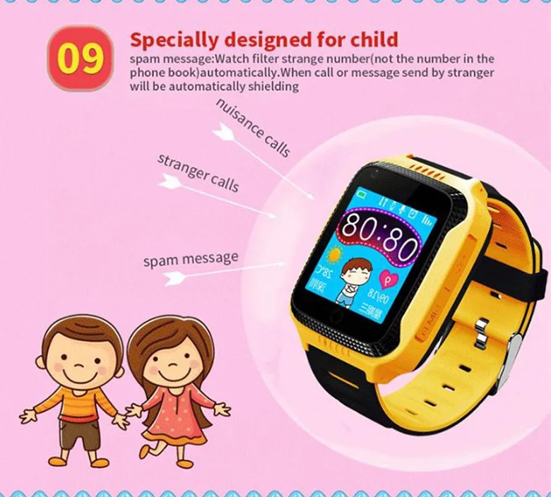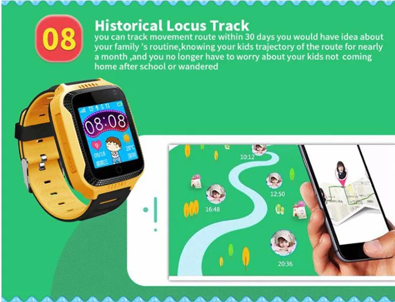 Practical Function: Telephone book, inter-phone, health and trace, electronic fence, watch alarm, multiple location and SOS emergency alert.The patron saint of children.
