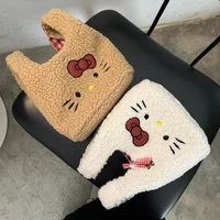 Cute Kit Lamb Fur Handbag Cheered Wallet Commuter Bag Youthful Sle ex Handheld Bag with Wrist Strap for