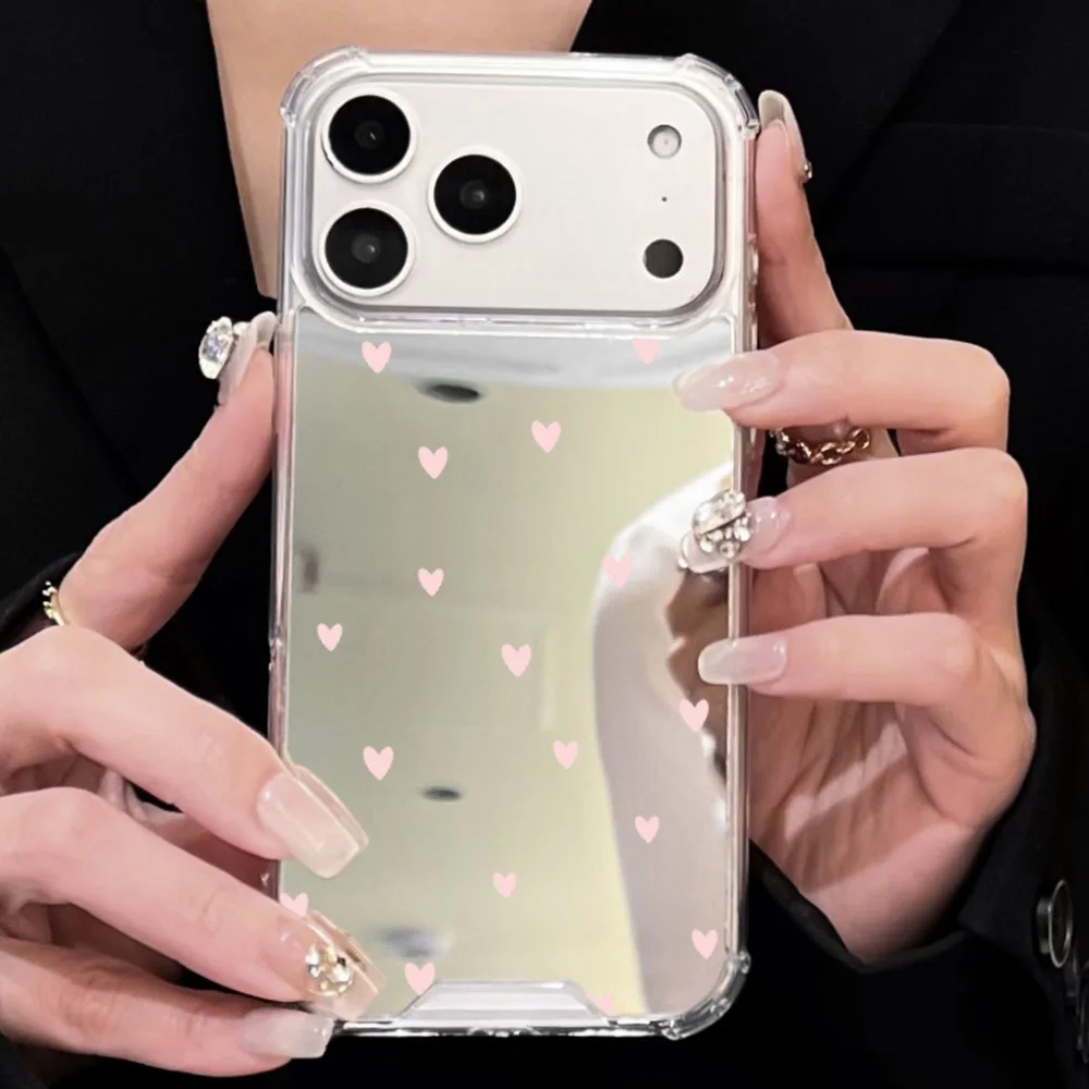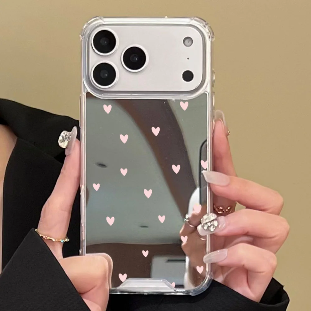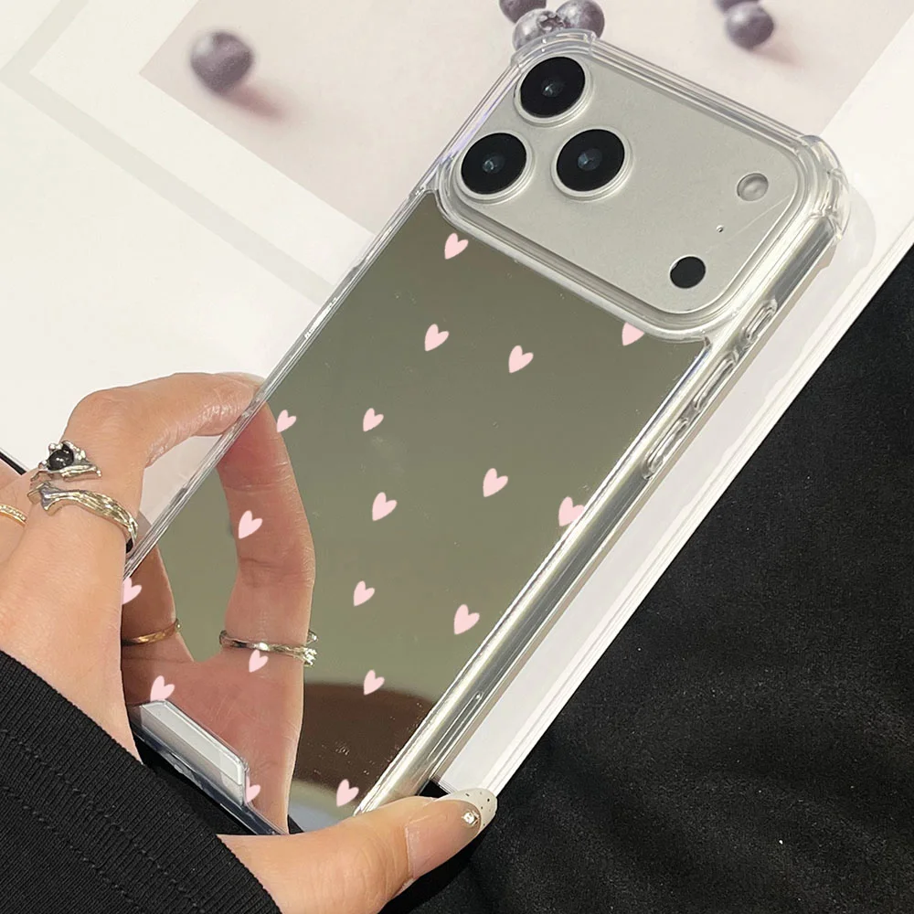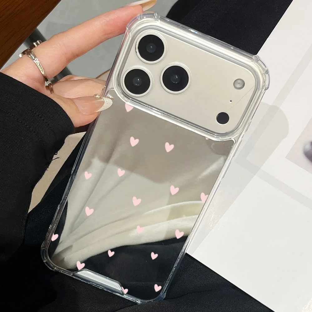 Cute Love Heart Mirror Acrylic Soft Phone Case For iPhone 17 16 15 14 13 12 11 Pro Max 17 Air XS X XR 7 8 Plus Bumper Cover