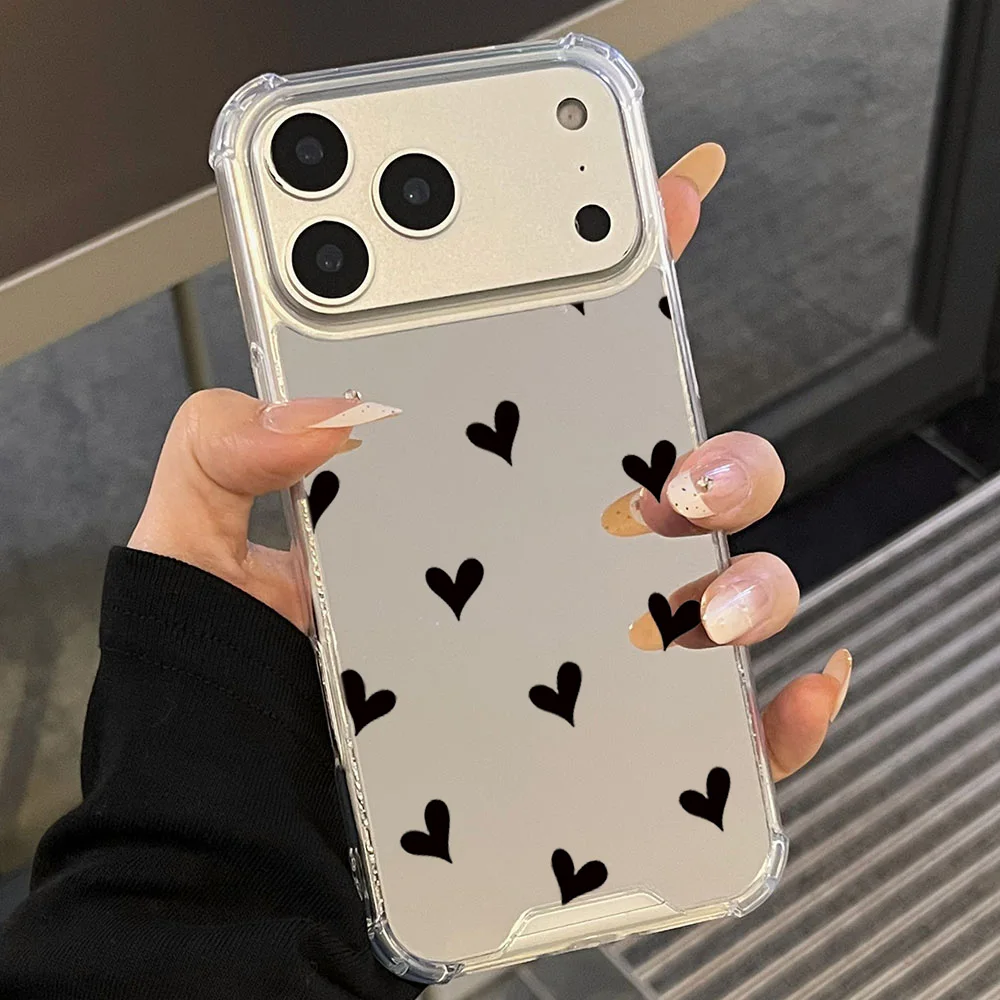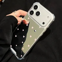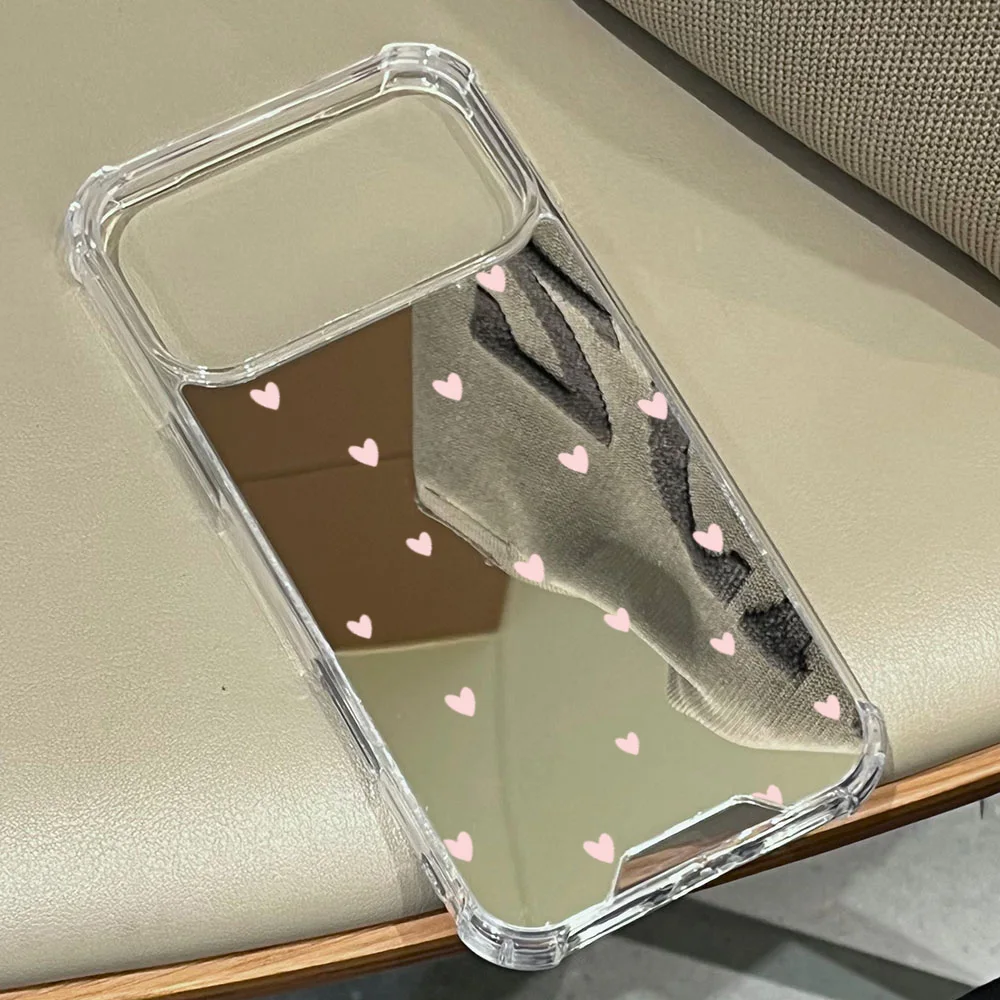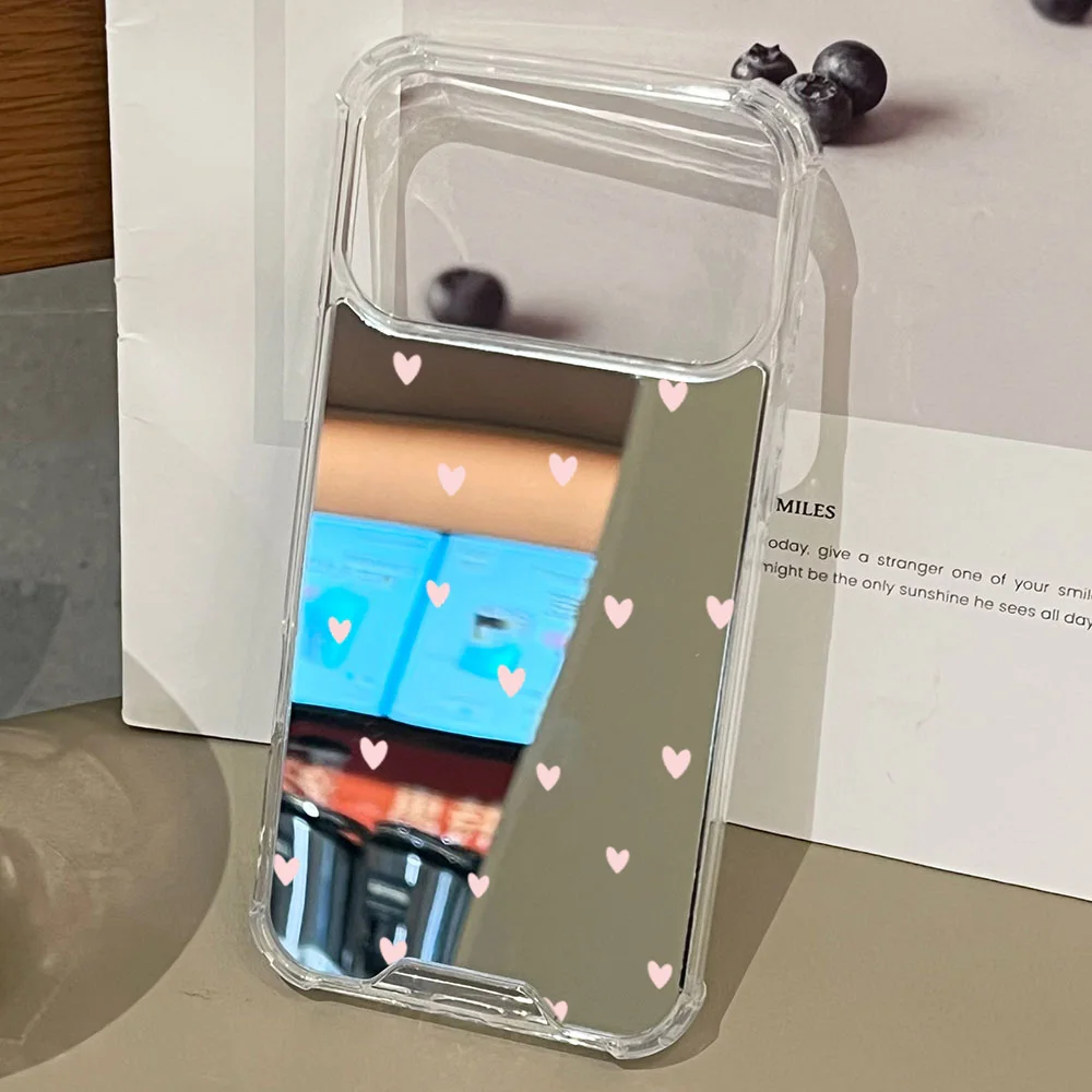 Cute Love Heart Mirror Acrylic Soft Phone Case For iPhone 17 16 15 14 13 12 11 Pro Max 17 Air XS X XR 7 8 Plus Bumper Cover