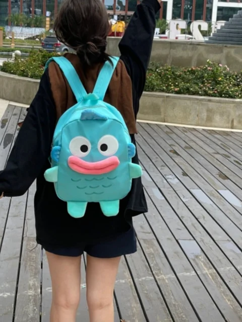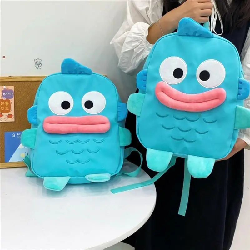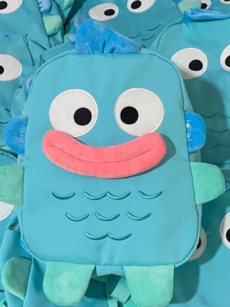 Featuring a cute yet quirky smiley fish design, this backpack stands out with its distinctive cartoon style.