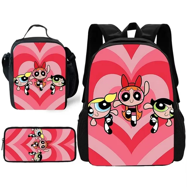 Cute P-PowerpuffS Girls pcs set Child School Backpack, Lunch Bags ,Pencil Bags ,School Bags for Boys Girls Best Gift