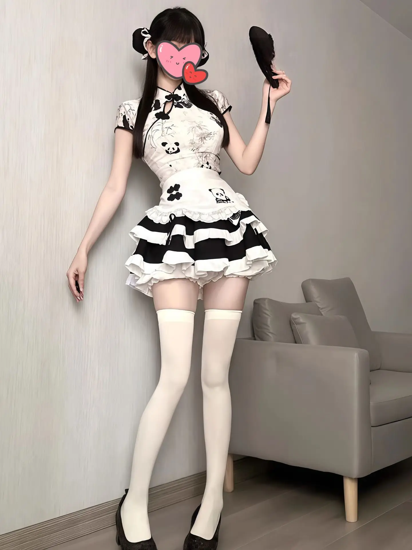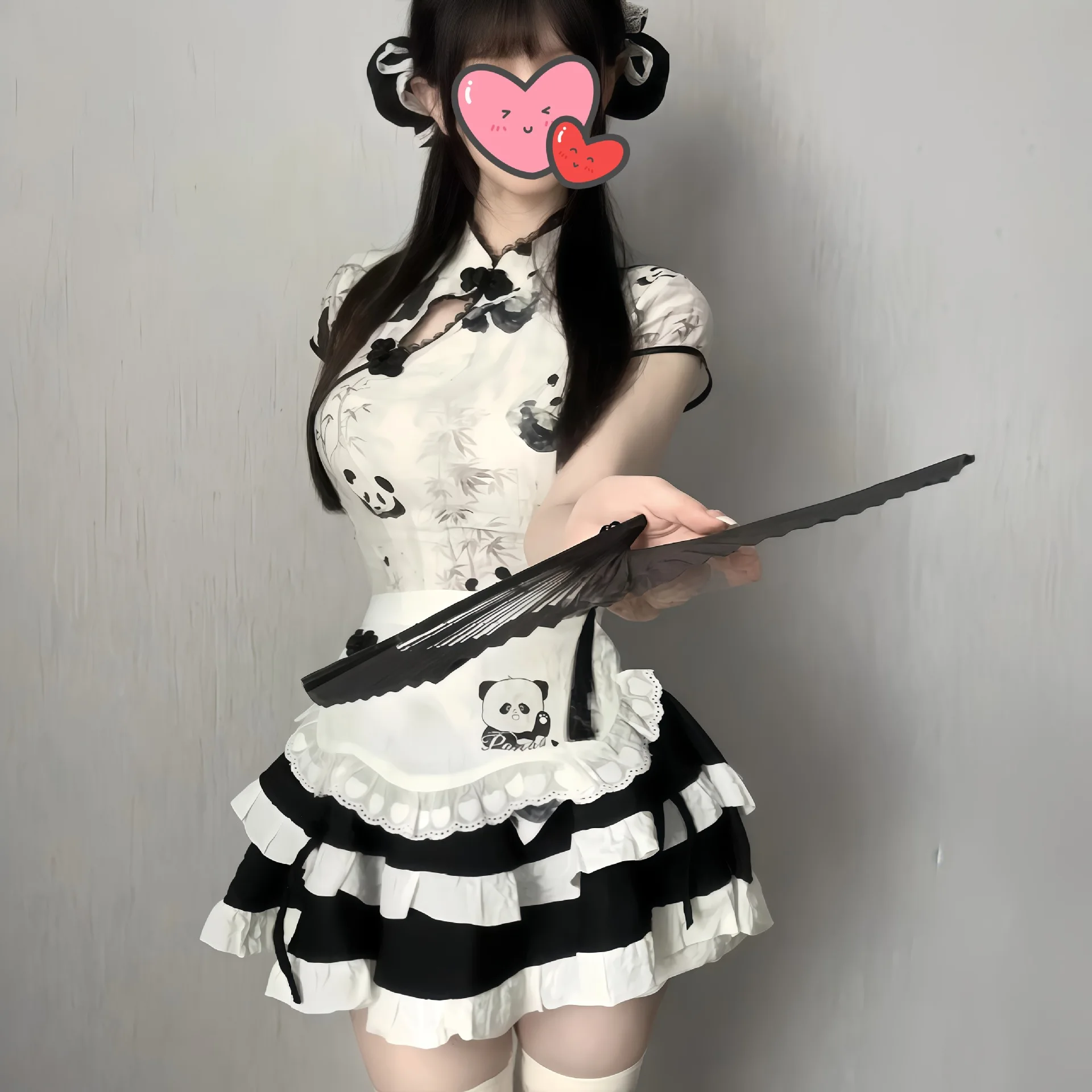 The dress features a cute panda print design, adding a touch of whimsy and charm to any outfit. It’s perfect for those who love playful and unique fashion statements.