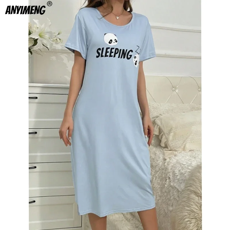 Cute Panda Print Chinese Sle Qipao Skirt Apron Cartoon Maid Puffy Skirt Set Nightgown Home Clothes Youth Summer