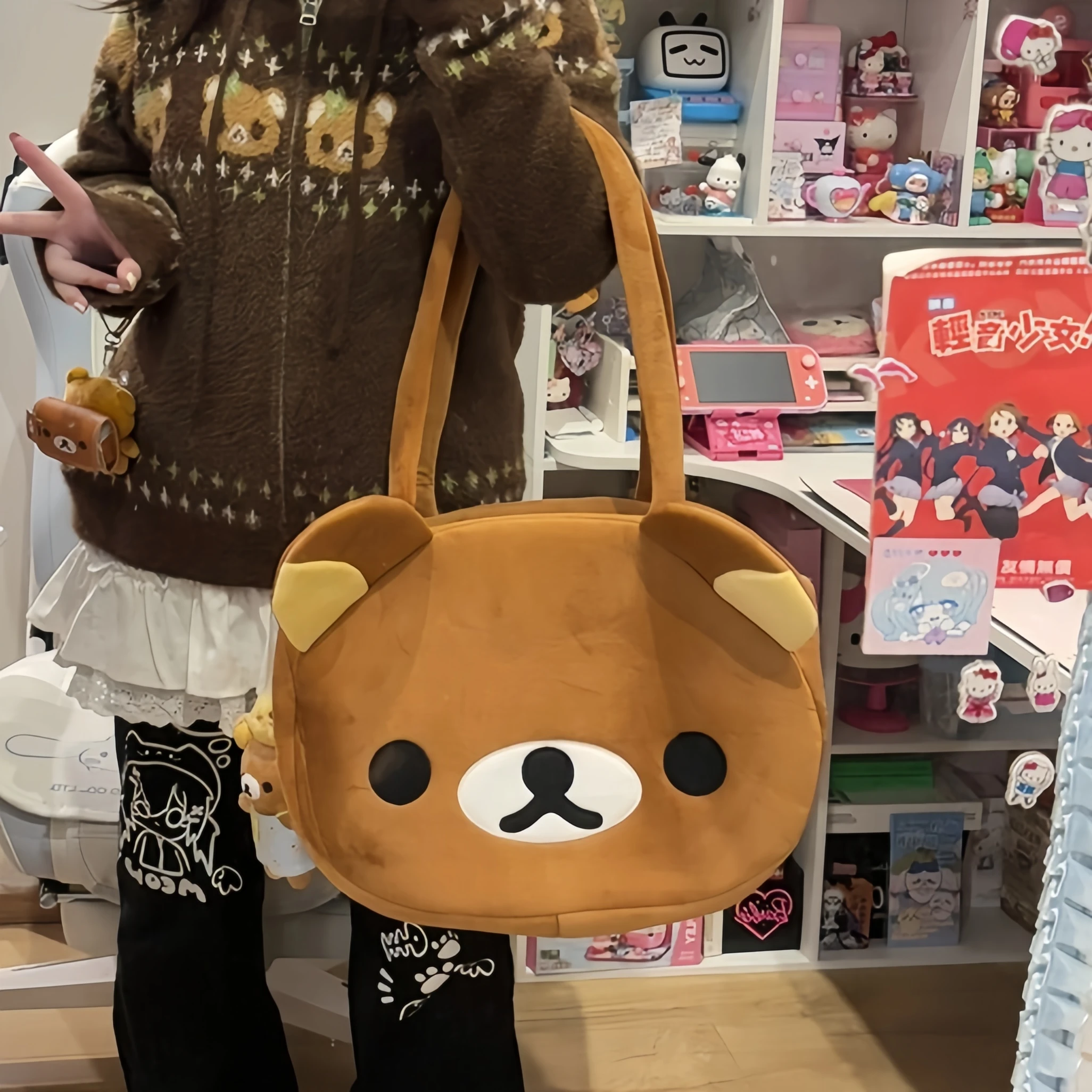 Cute Rilakkuma Shoulder Bag Japanese Style Lovely Bear Plush Bag Lolita Messenger Bag for Girl Travelling Bag Birthday Gifts