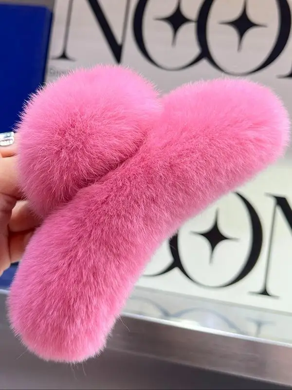 Cute Solid Color Plush Hair Clip Casual Cross-Border Duckbill Hair Clip Festive Element New Year Style for African European S...