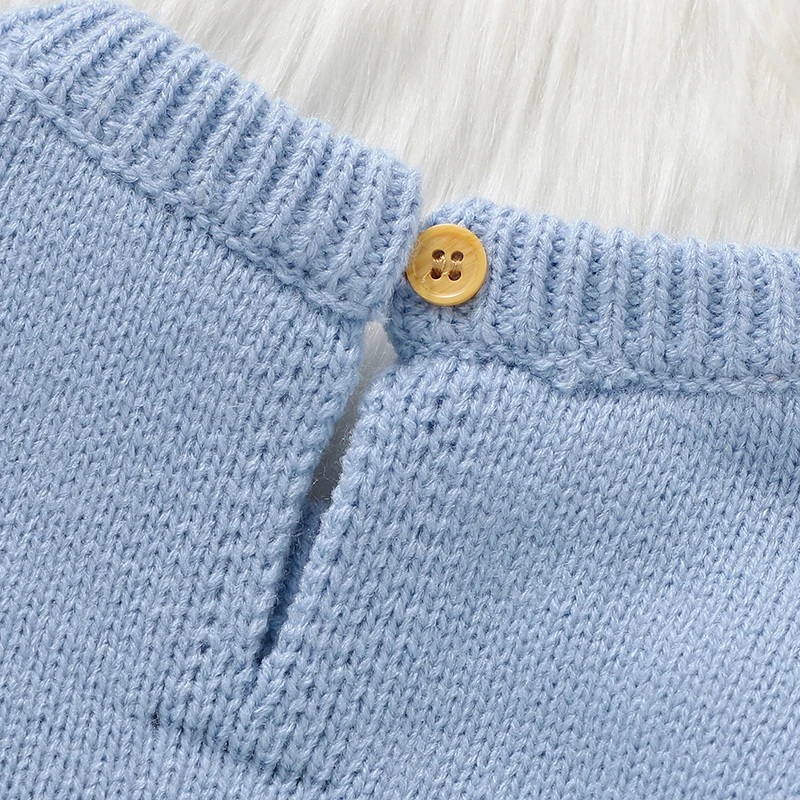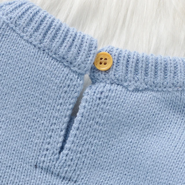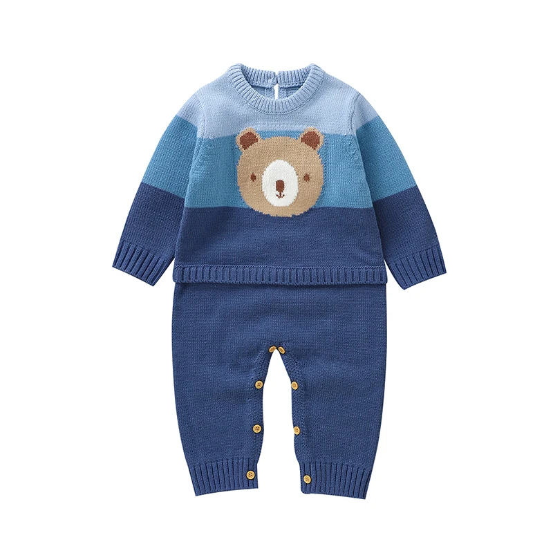 Cute Teddy Bear Long Sleeve O-neck Knitted Acrylic Newborn Infant Boys & Girls Winter Rompers Blue