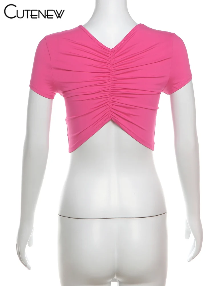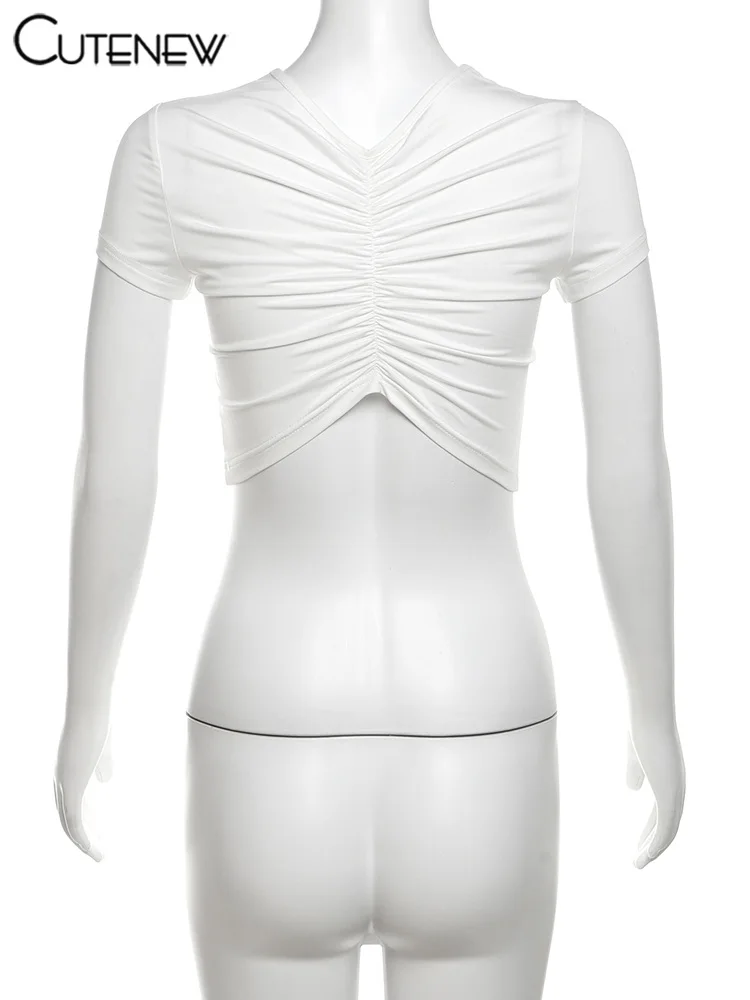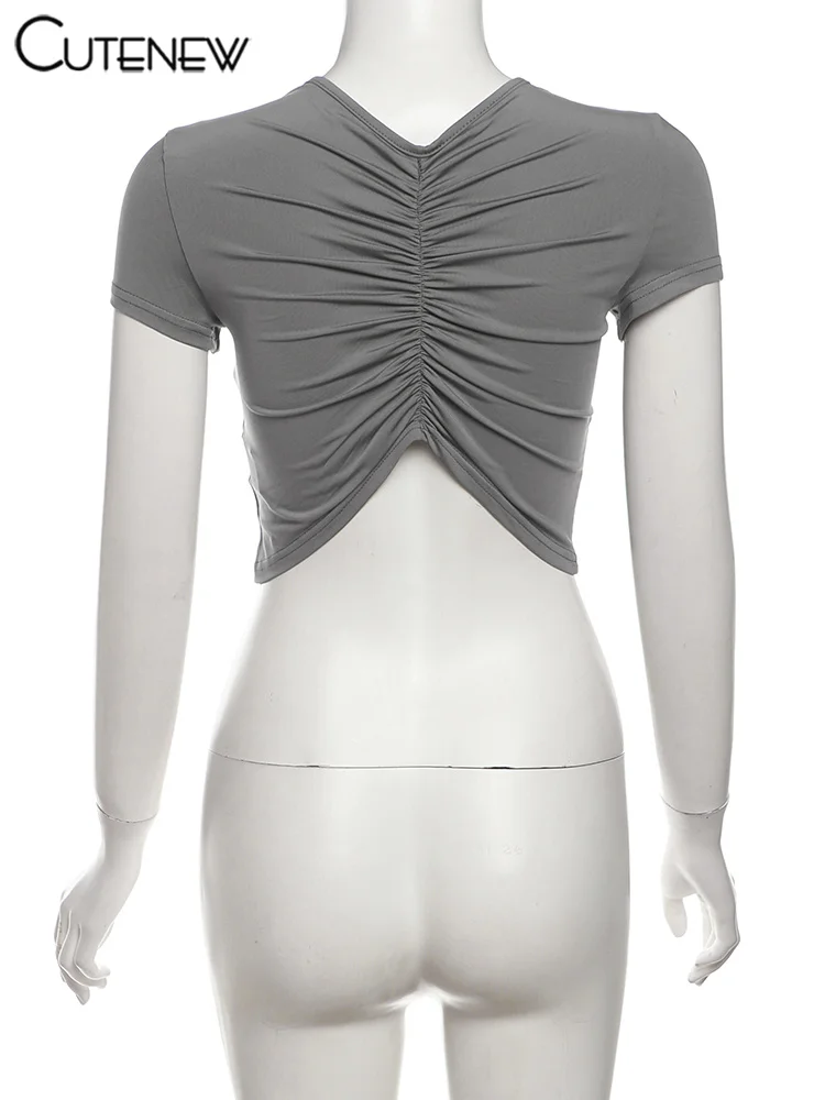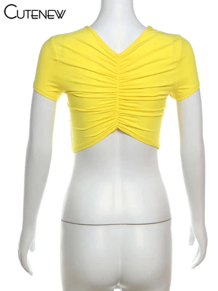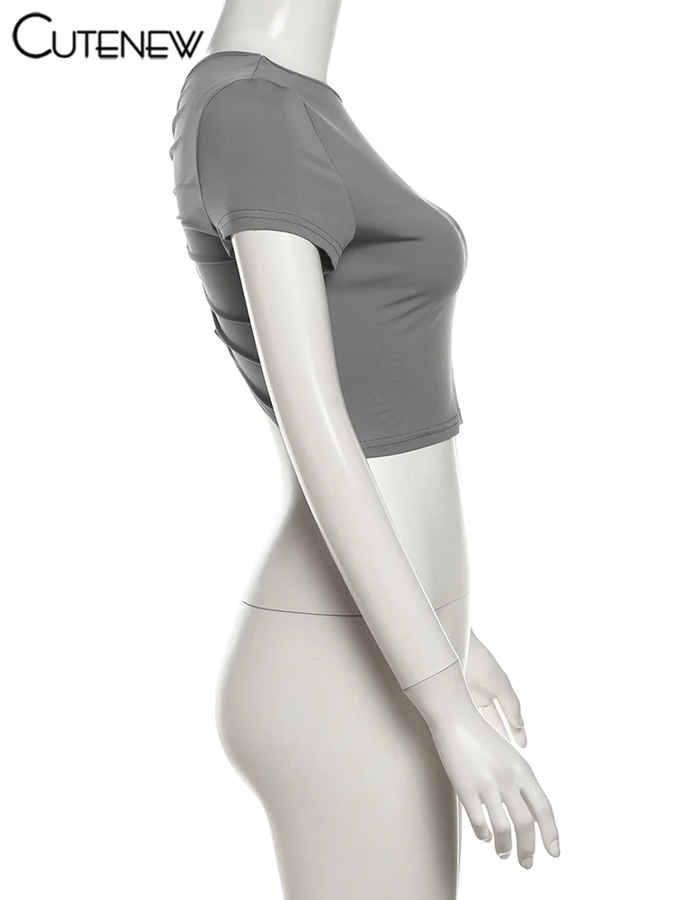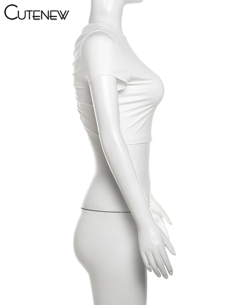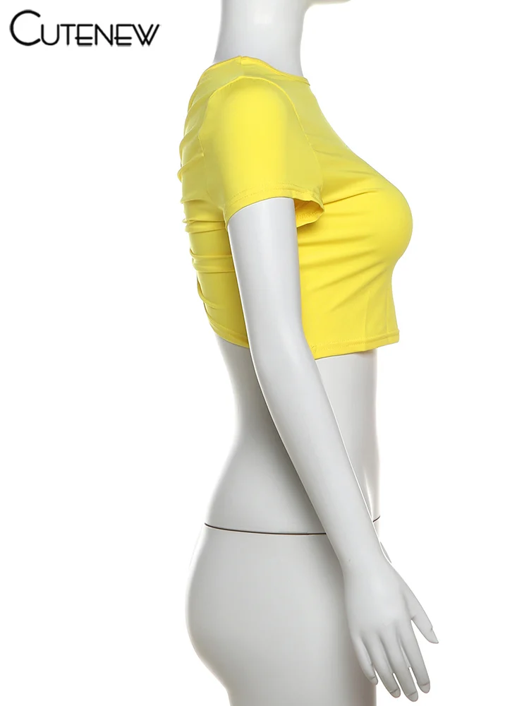 Cutenew Letter Print T-shirts Women Casual Wild Summer New Short Sleeve Shirring Slim Crop Tees Female