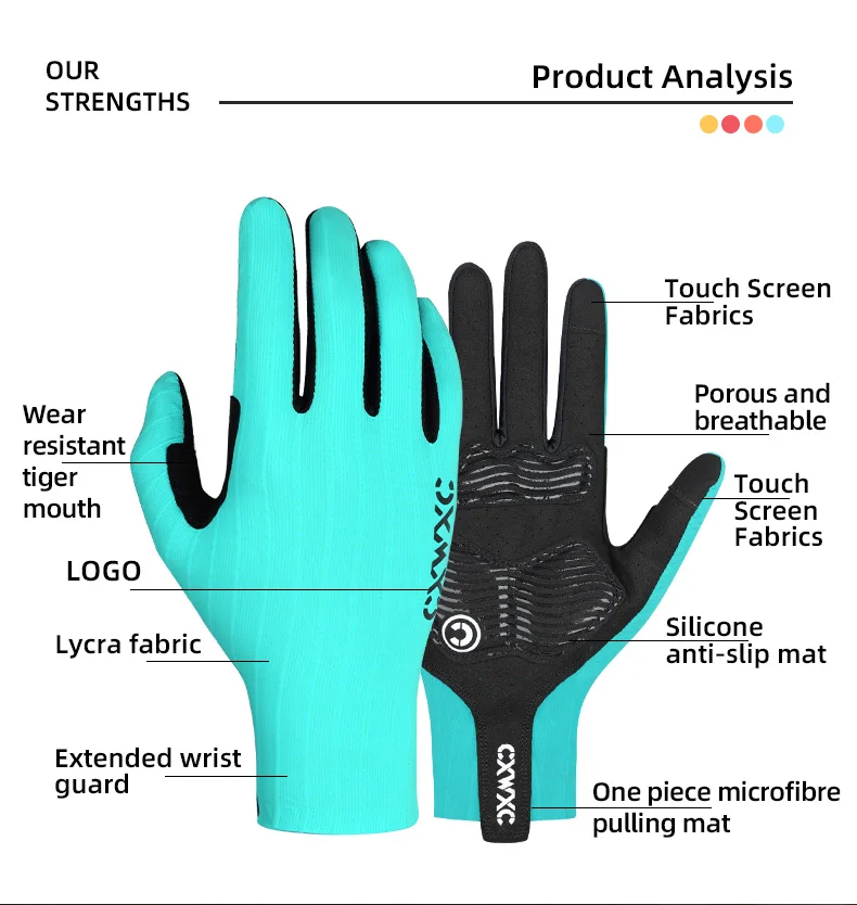 CXWXC Touch Screen Long Full Fingers Gloves Breathable Sports Cycling Gloves MTB Road Bike Riding Racing Women Men Mittens