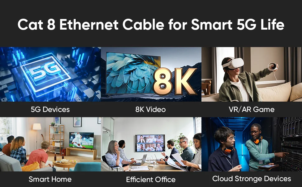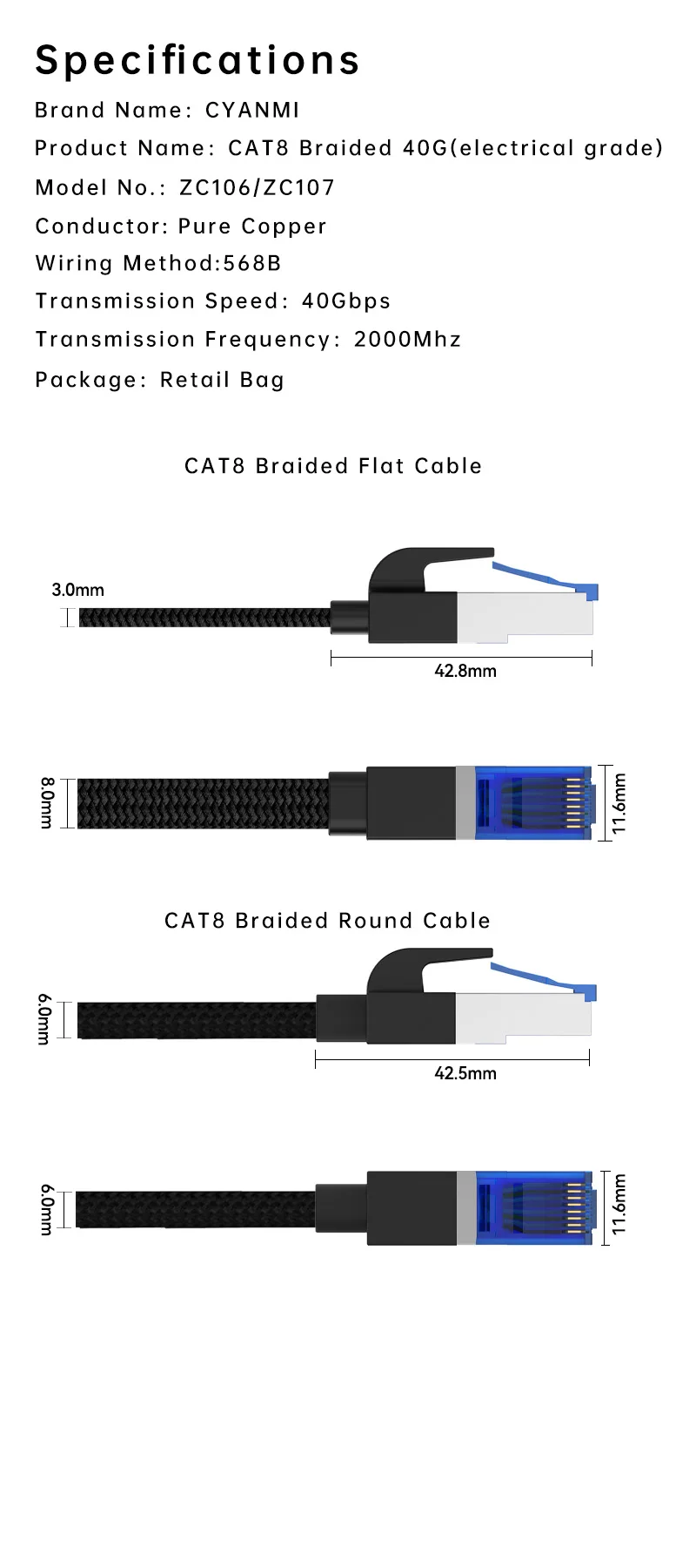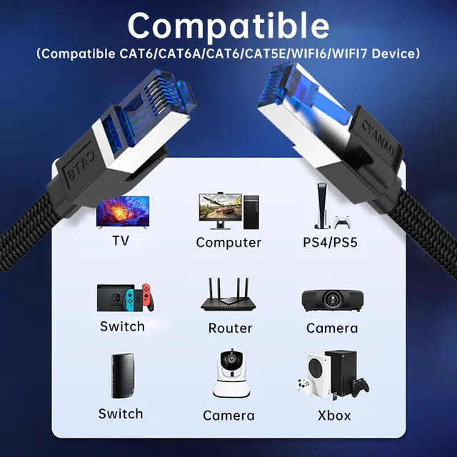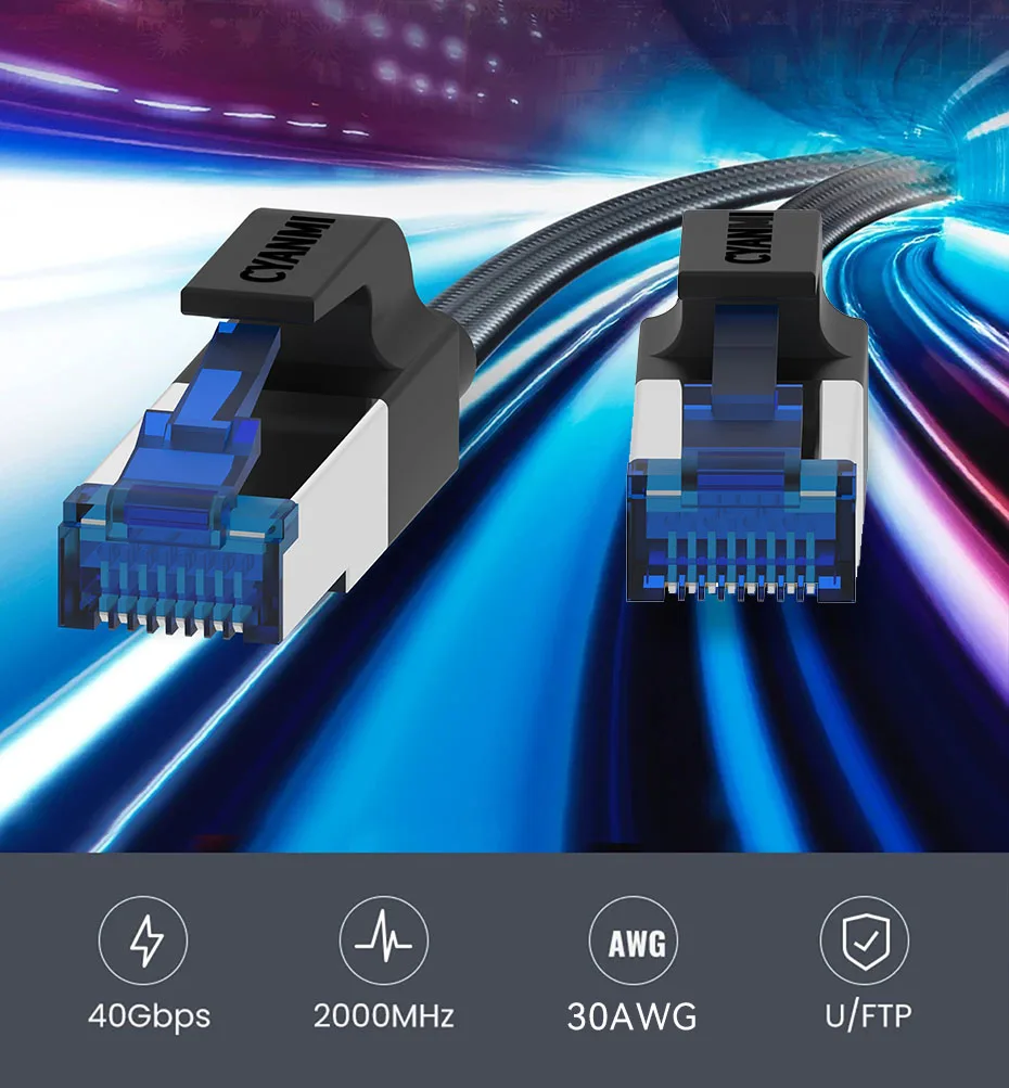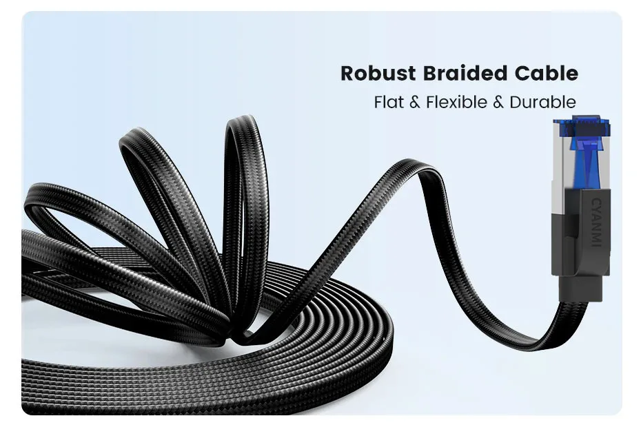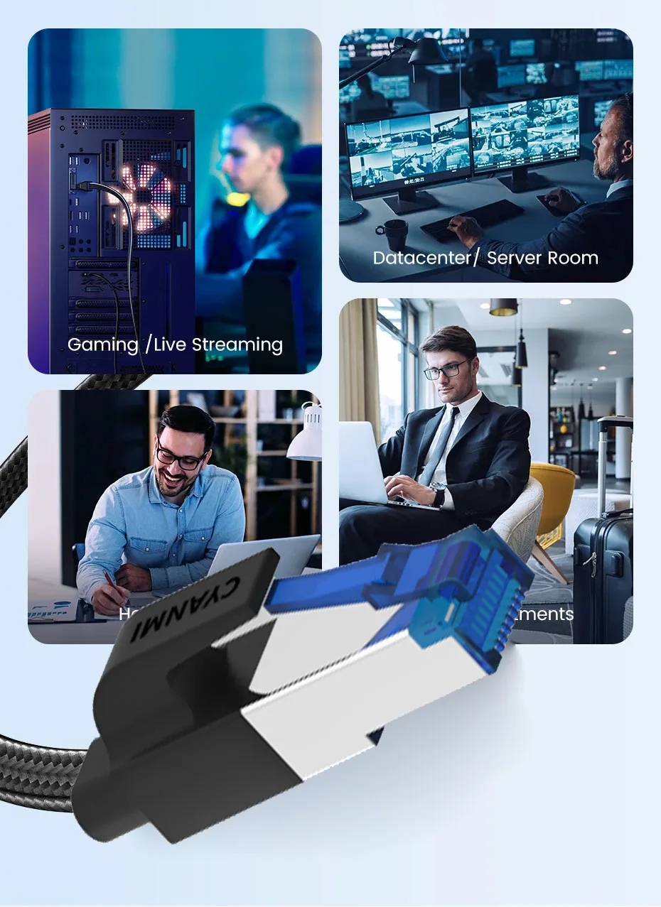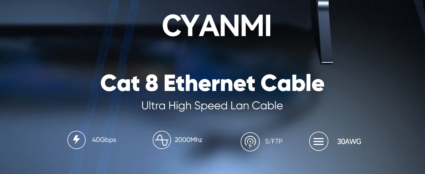Experience lightning-fast data transfer with the CYANMI Cat8 Ethernet Cable, supporting up to 40Gbps and 2000MHz for seamless internet connectivity.