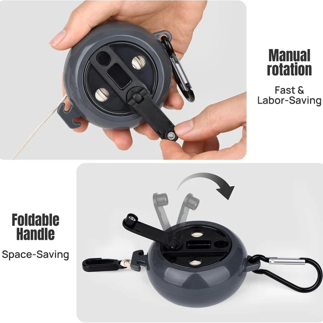 Strong and Durable: This portable clothesline has a built-in 32-foot /10m PP rope, which can be rotated and adjusted to release/retract the length of the rope without worrying about entanglement.