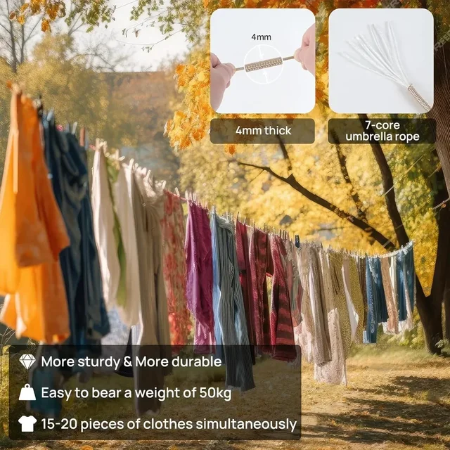 This clothesline can not only be used to dry clothes, but also can be used as a fixed rope for camping tents. It can be used as a protective rope for fishing rods and a spare rope for daily life. High quality and versatile.
