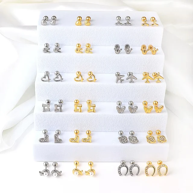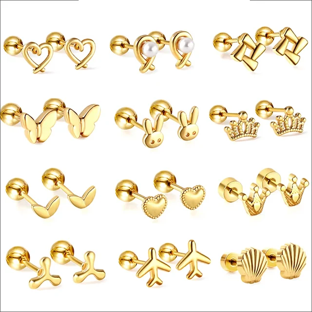 Dainty Mini Cute Women’s Stainless Steel Stud Earrings Girls Heart Butterfly Rabbit Helix Ear Cartilage