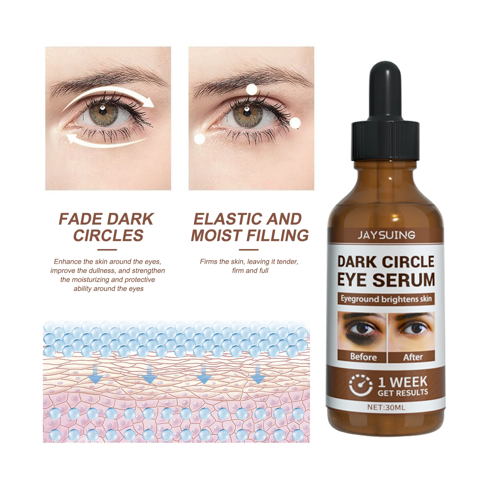 Dark Circles Removal Serum Under Eye Puffiness Remover Essence Fade Melanin Anti Wrinkle Whi-tening Moisturizing Eye Care Product 30ml