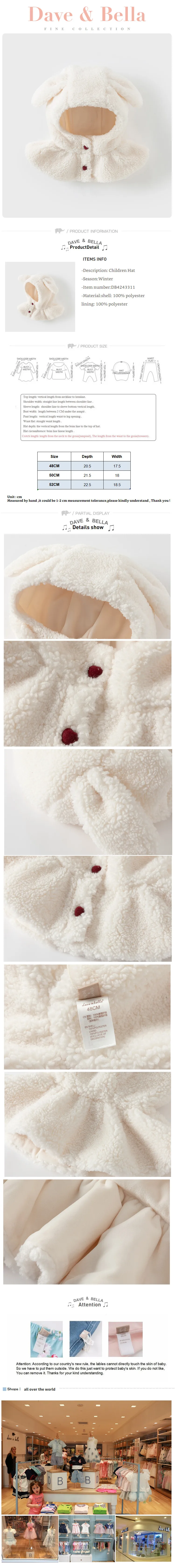 Dave Bella Boys Ear Protection Winter Autumn Plush Children's Baseball Cap Black White Panda Wide Brim Kids Warmth Hat DB4243604