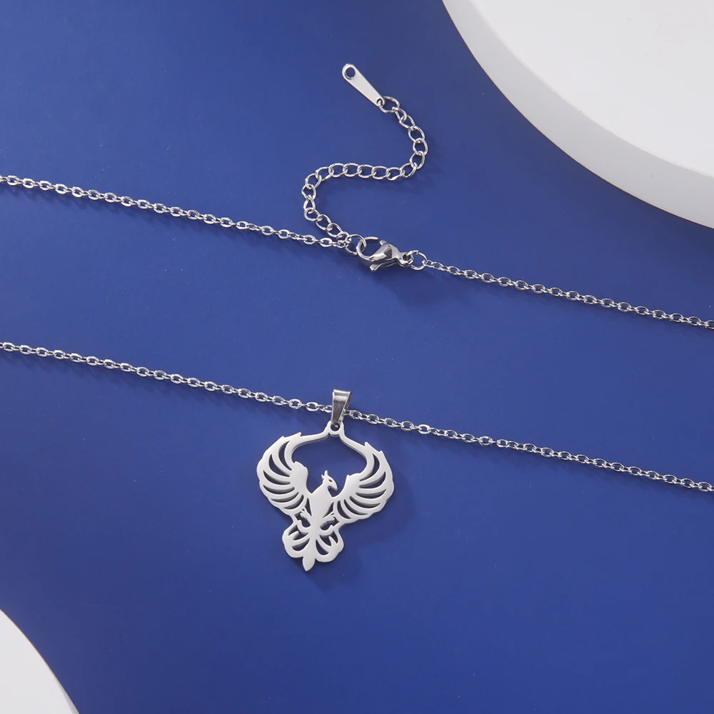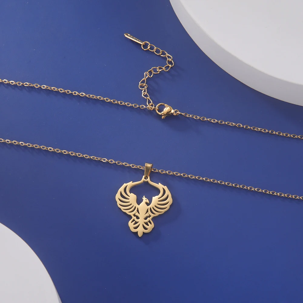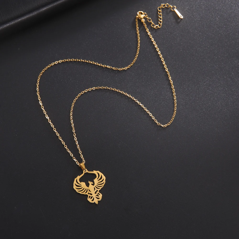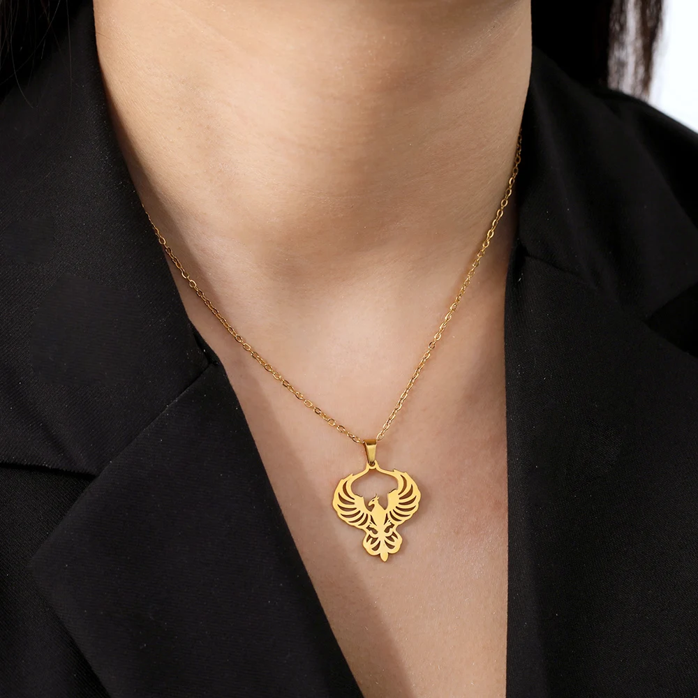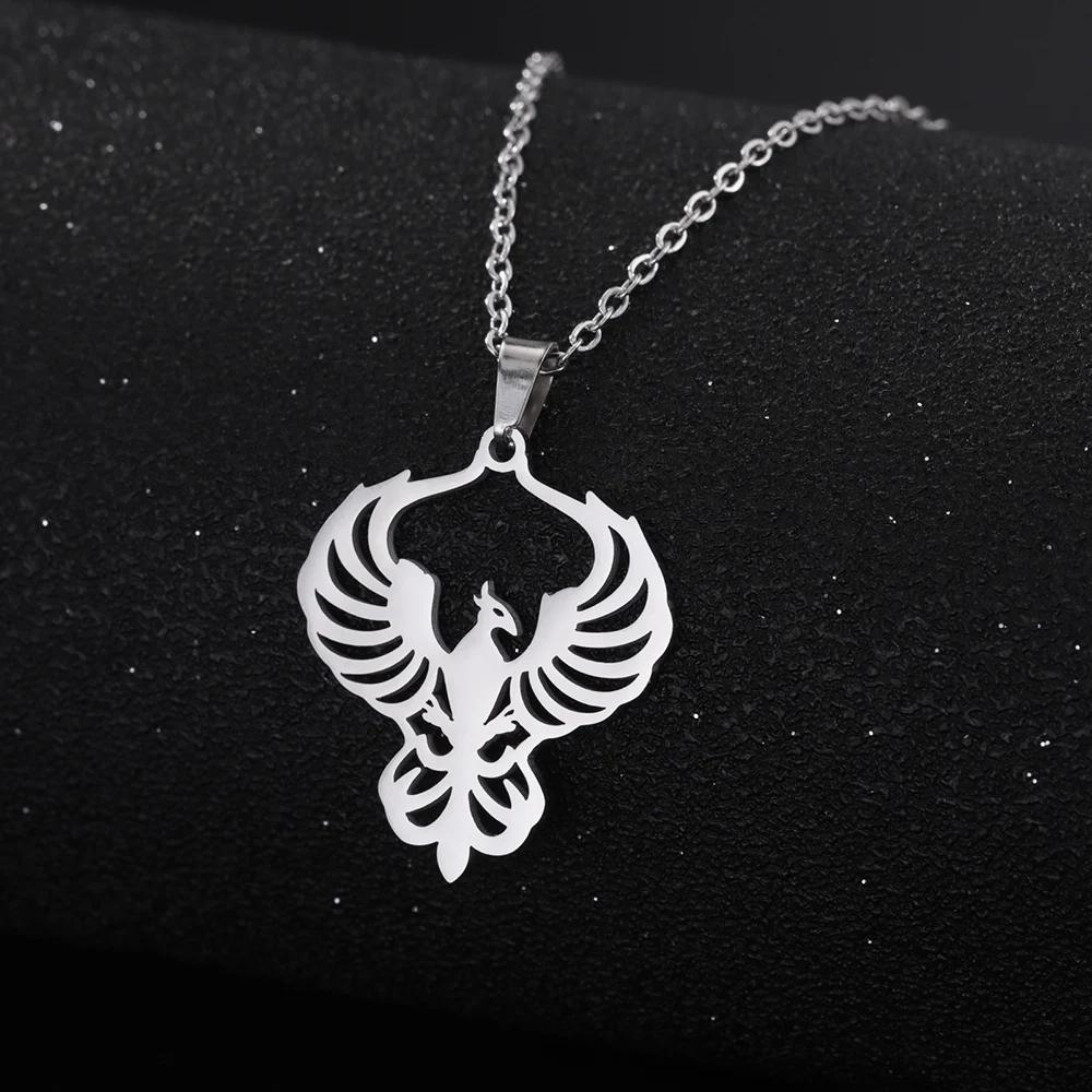 Dawapara Phoenix Guardian Animal Necklace Mythology Bird Pendant Protection Strength Symbol Stainless Steel Women Necklace