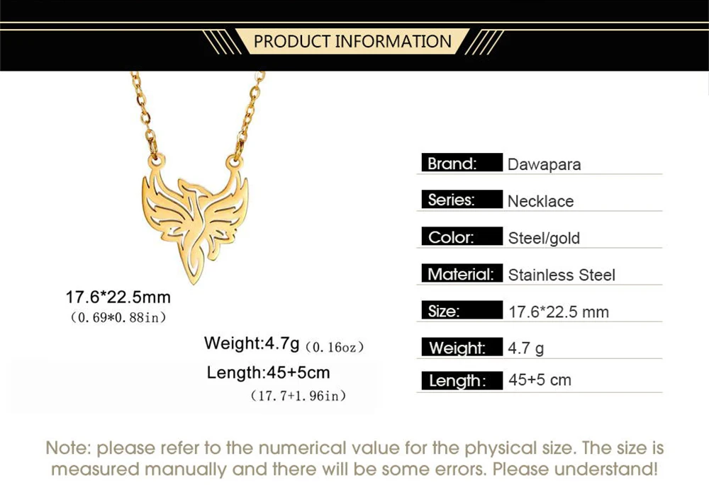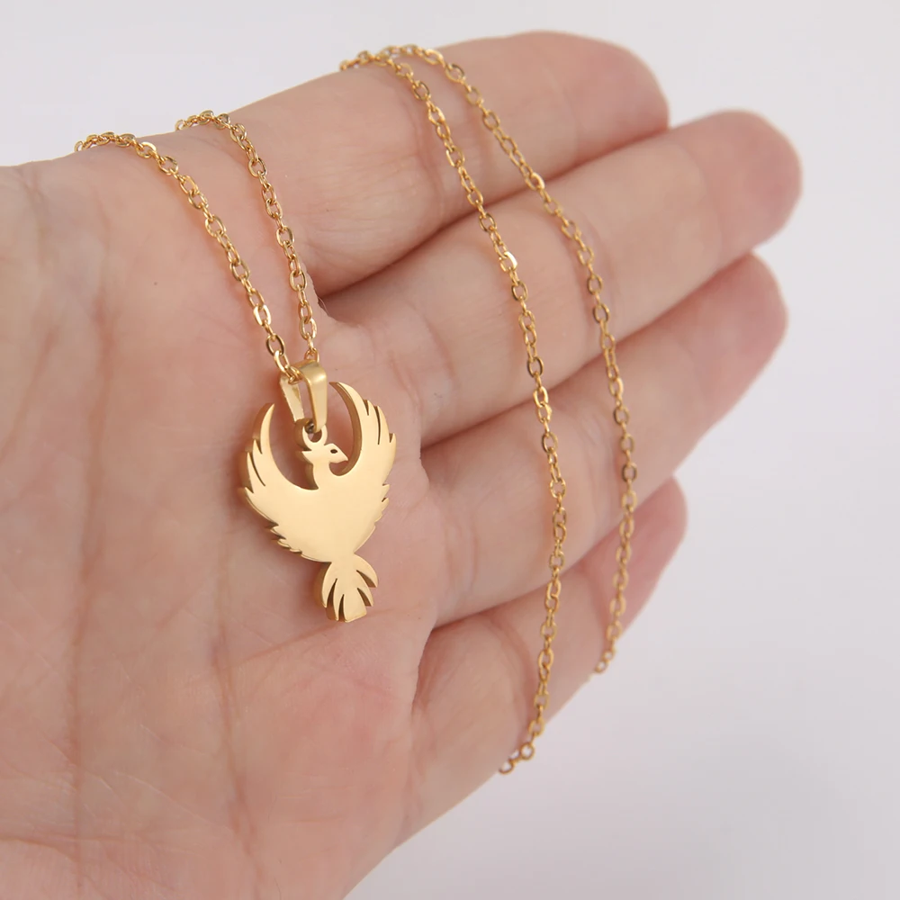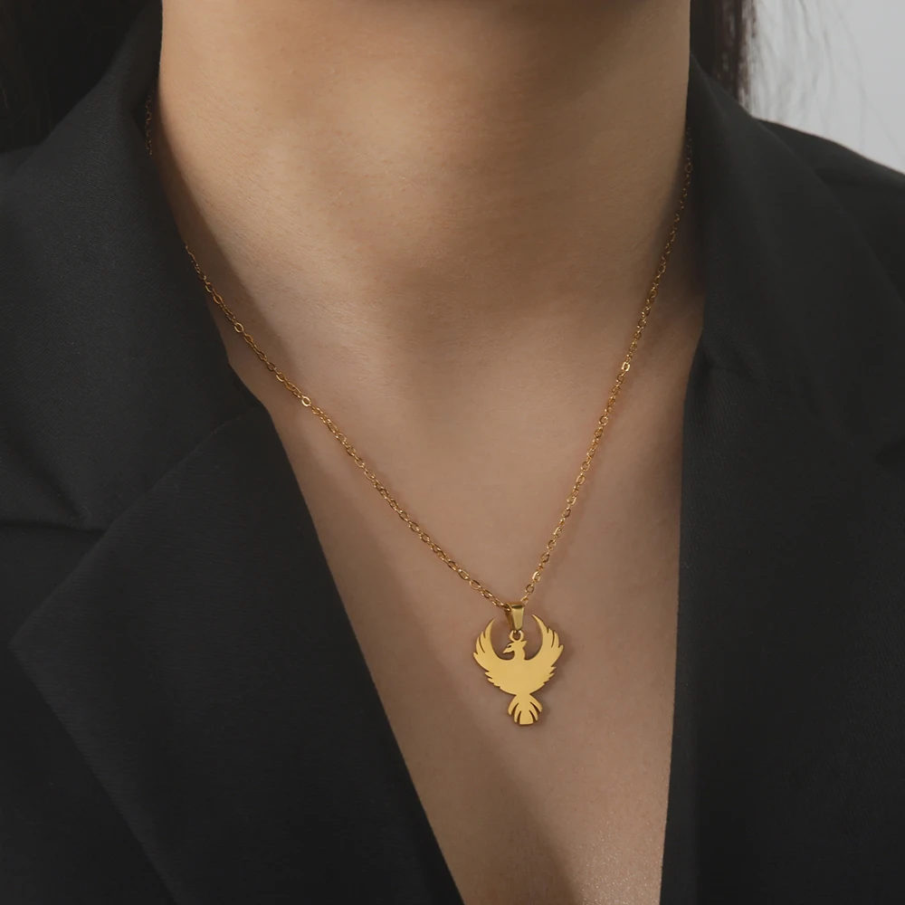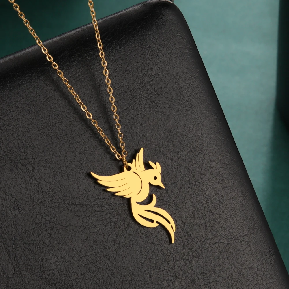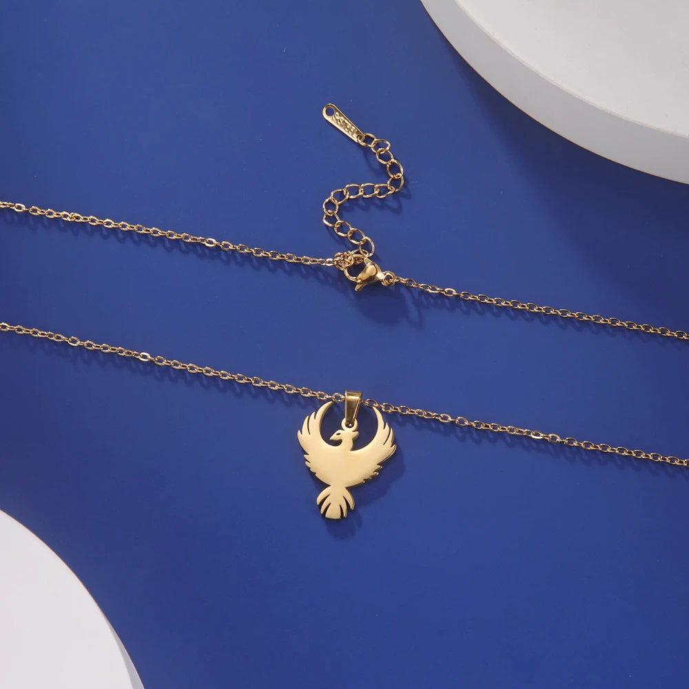 Dawapara Phoenix Guardian Animal Necklace Mythology Bird Pendant Protection Strength Symbol Stainless Steel Women Necklace