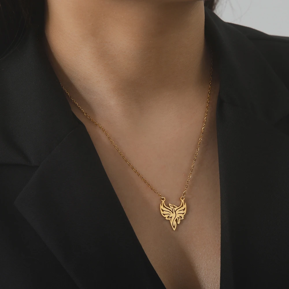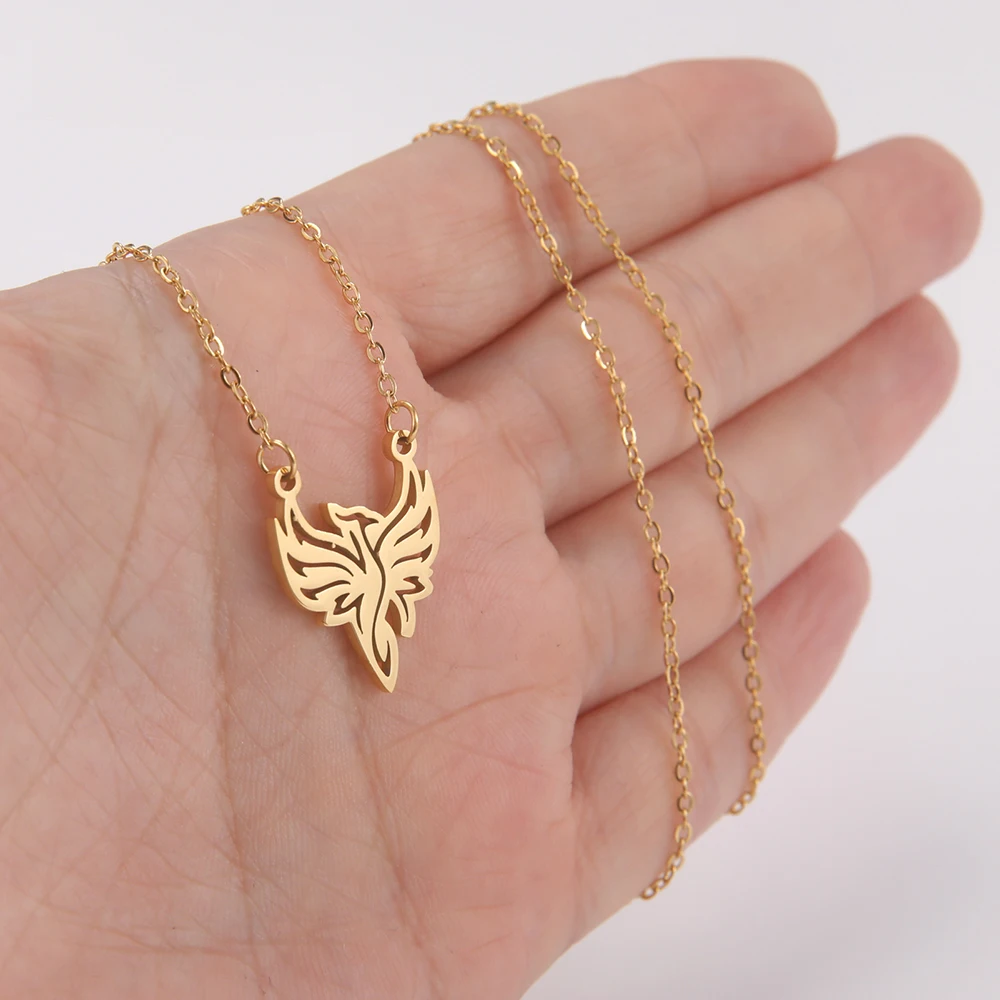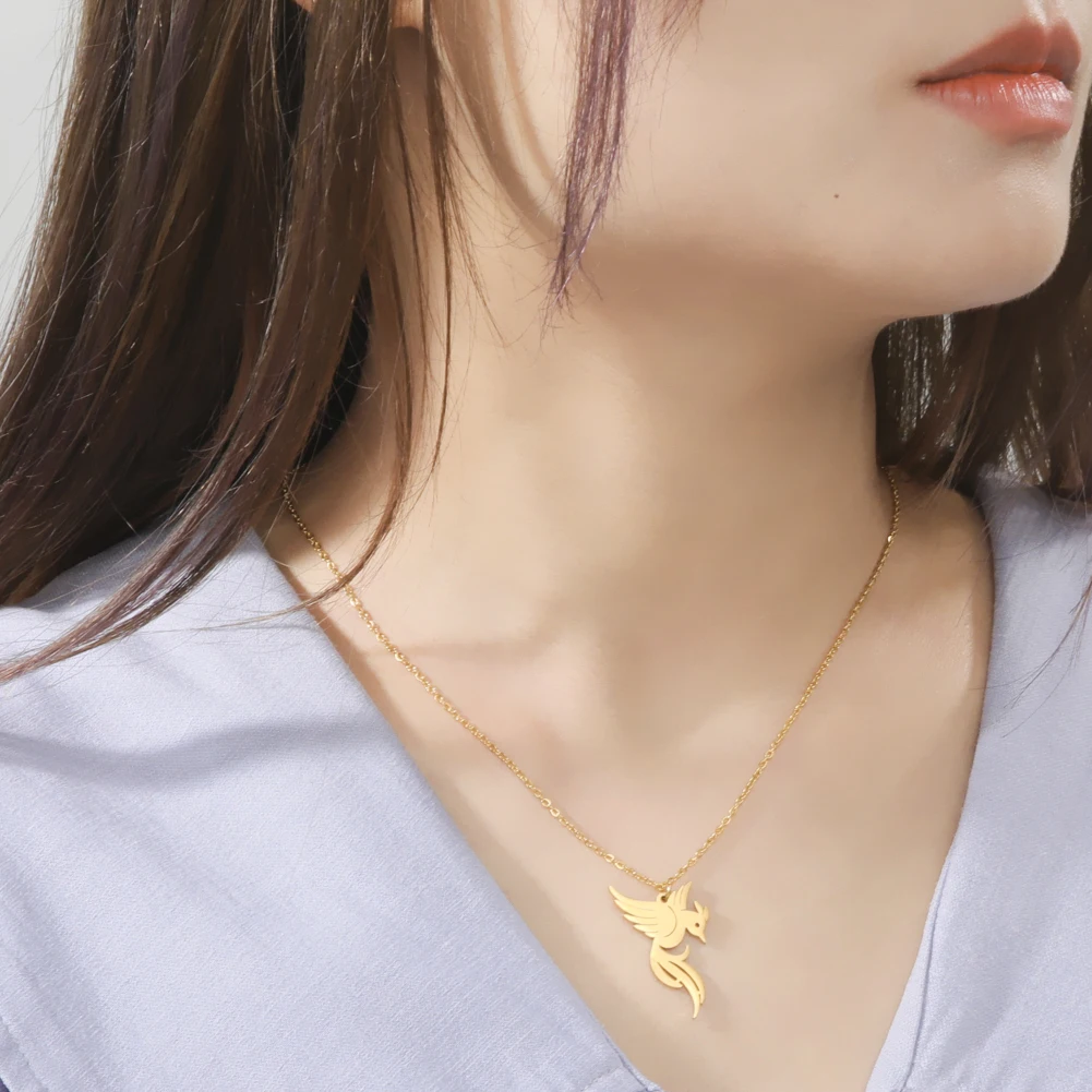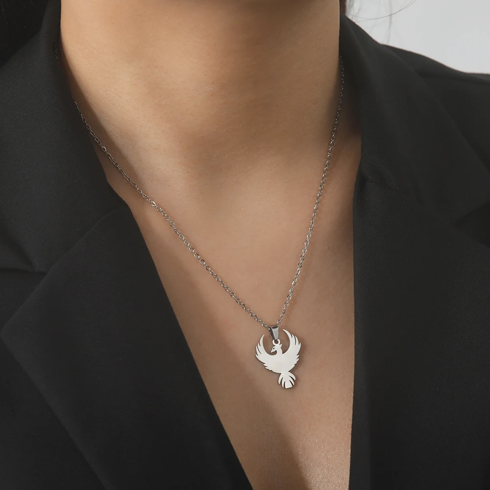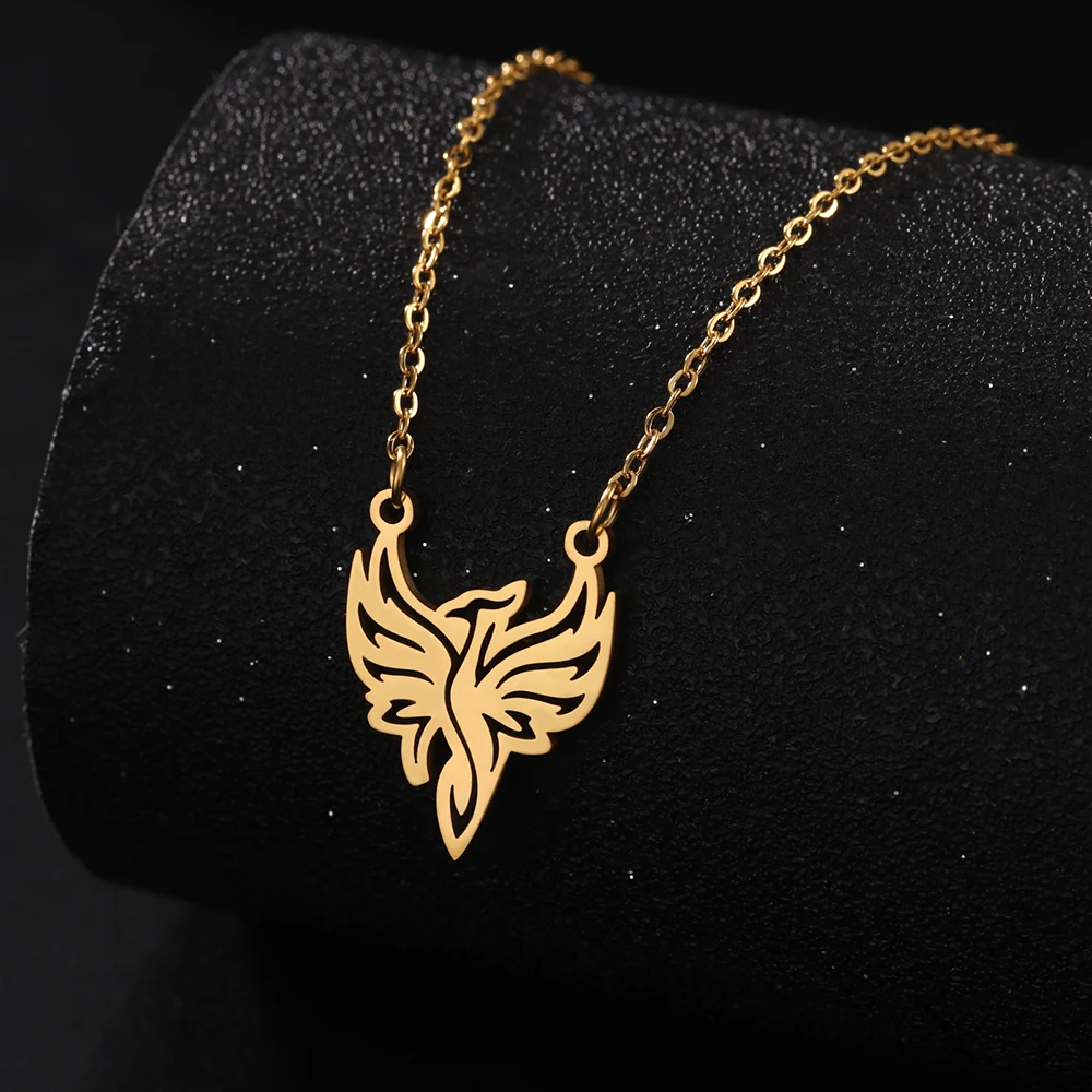 Dawapara Phoenix Guardian Animal Necklace Mythology Bird Pendant Protection Strength Symbol Stainless Steel Women Necklace