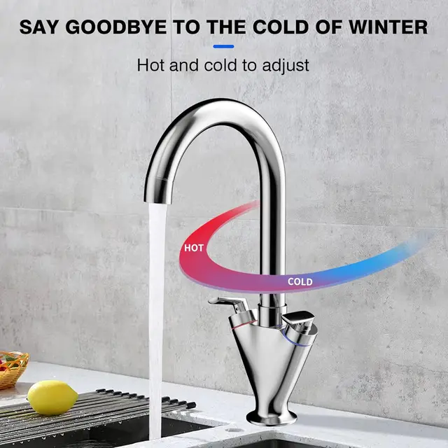 DayPlus Kitchen Mixer Tap Traditional 360° Swivel Spout Monobloc Basin Taps Faucet Twin Lever Hot & Cold Water Control+ Hoses