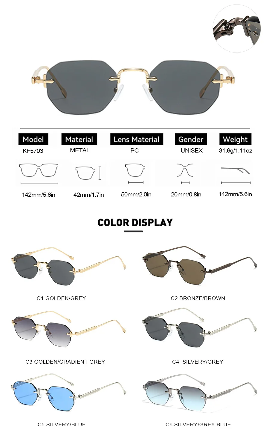 DDDLONG Retro Fashion Rimless Punk Y2k Sunglasses Women Men Sun Glasses Vintage UV400 Outdoor Shades