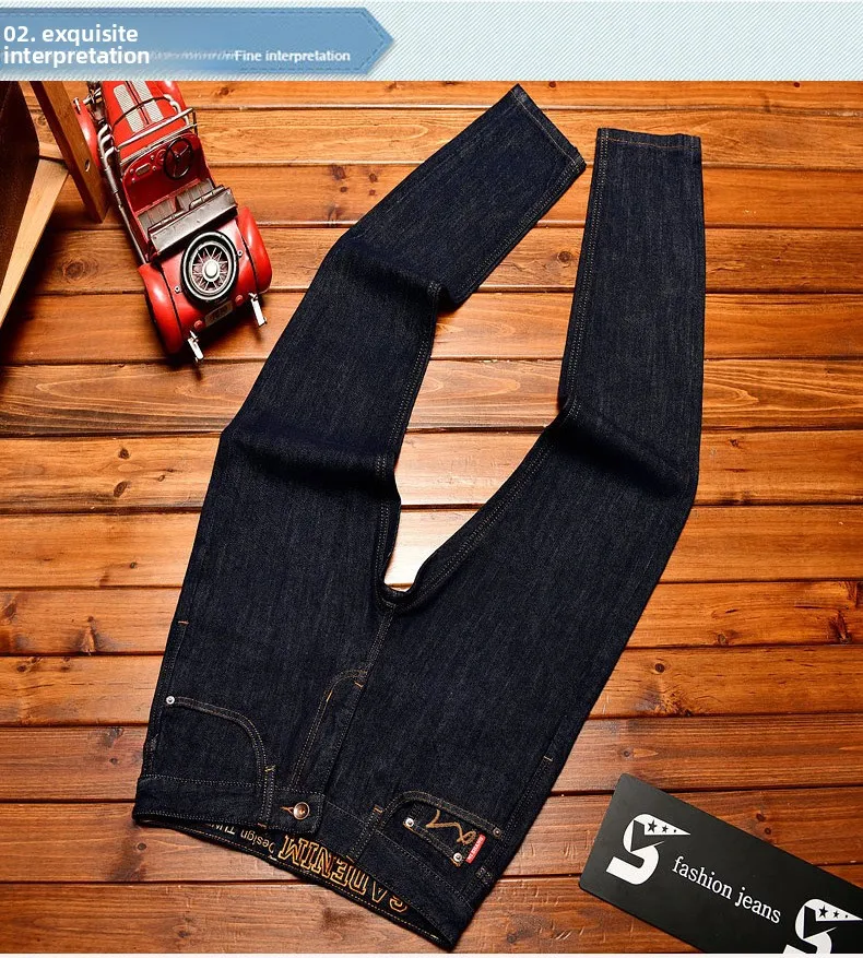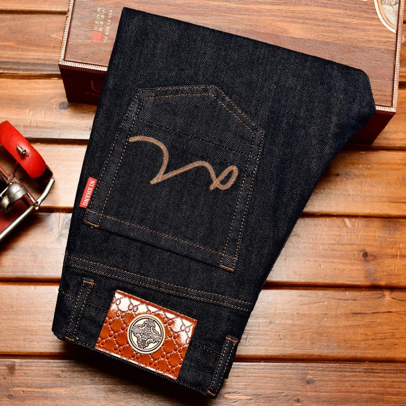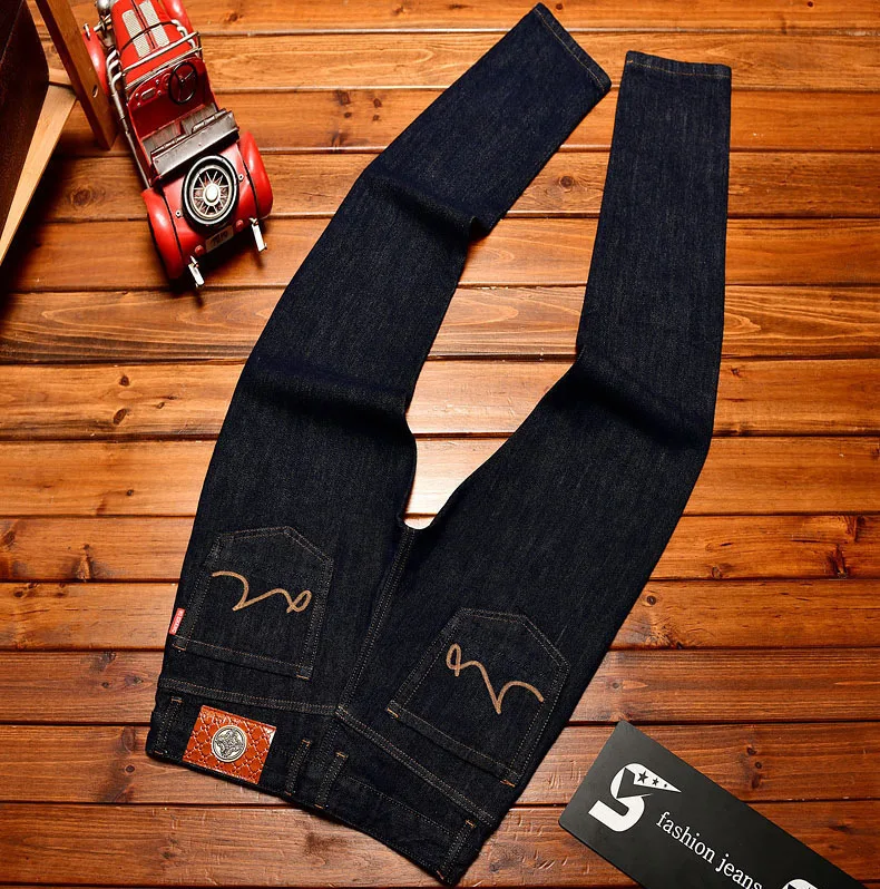 EH·MD Japanese Handmade Embroidered Jeans Men's Pure Cotton Straight Tube Hip-Hop Popular Slim Red Ears Show Thin Trousers Devil