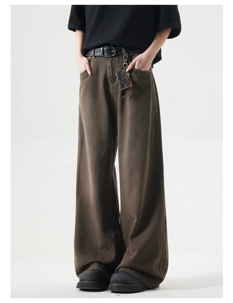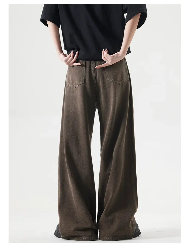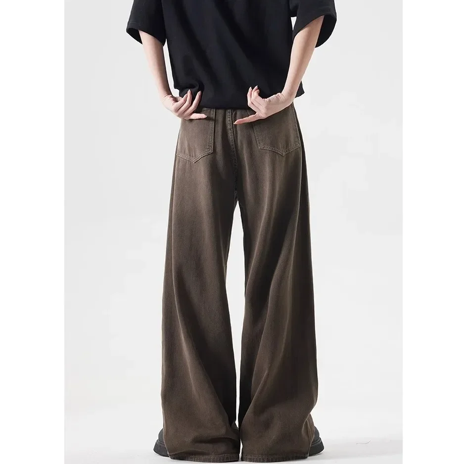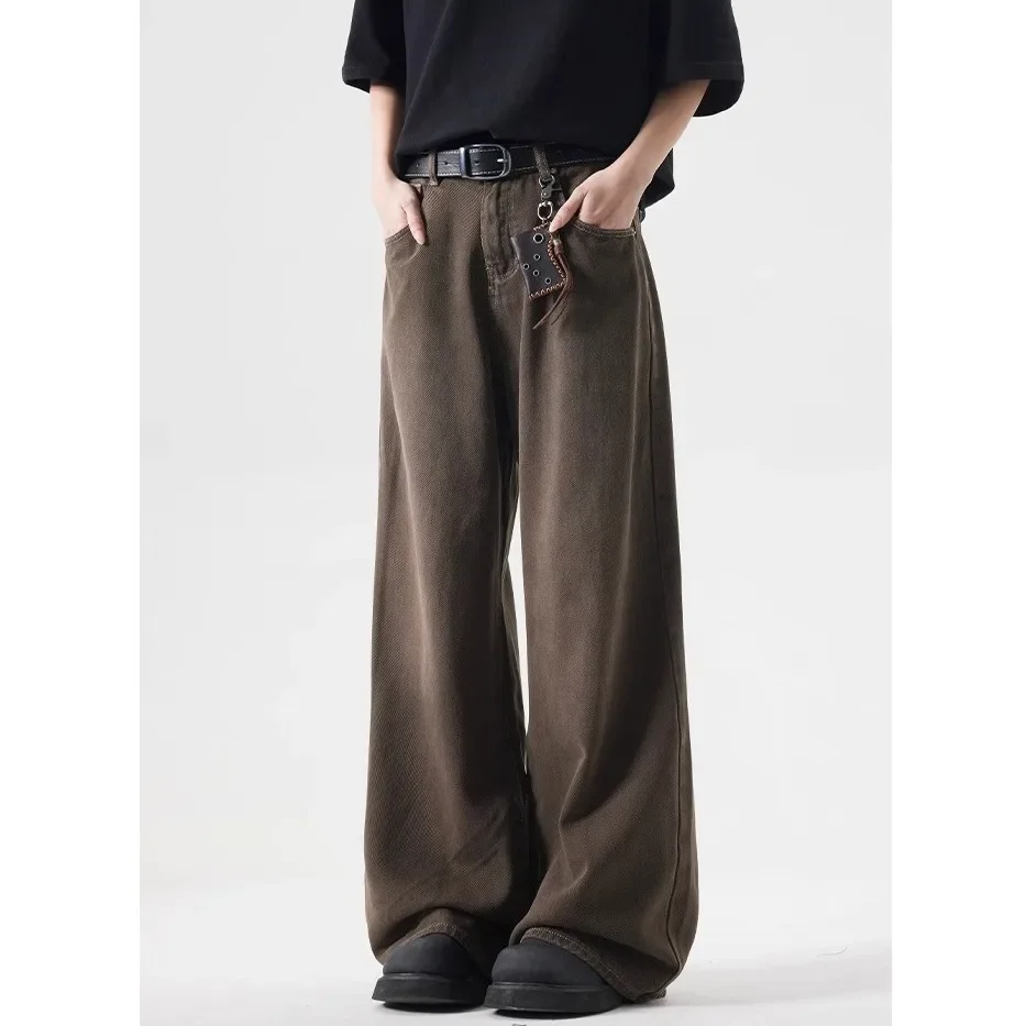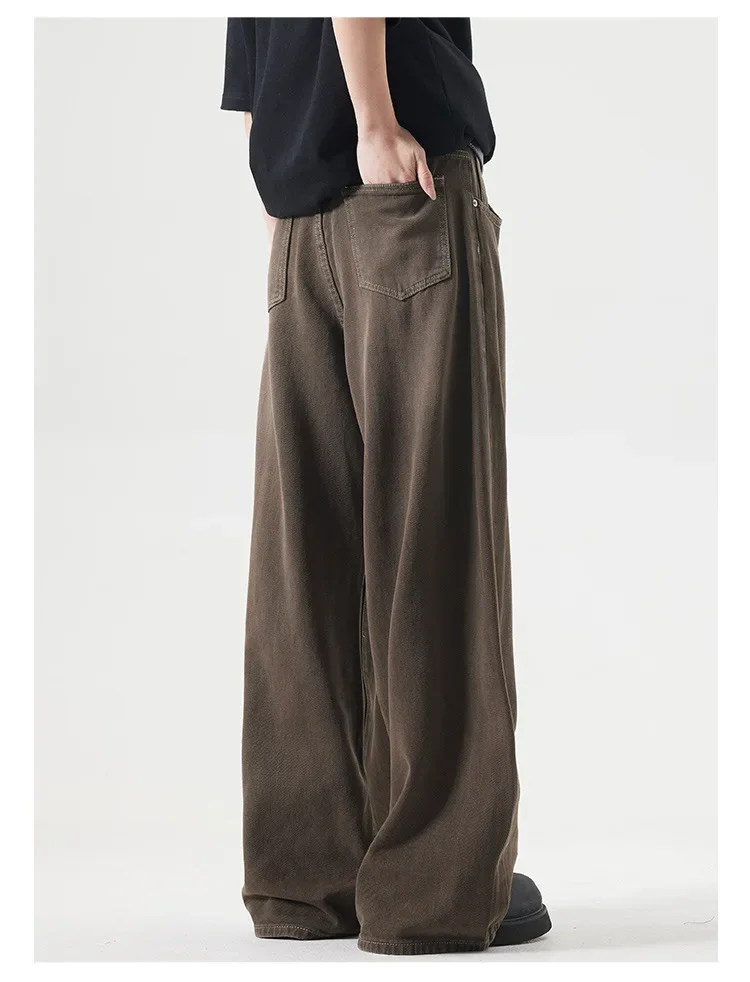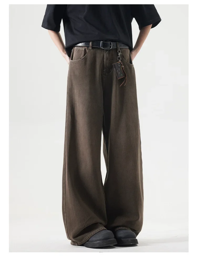 Deep Brown Straight Leg Cleanfit American Vintage Washed Denim Jeans Casual High Rise Loose Fit Men's Jeans Spring Summer