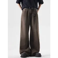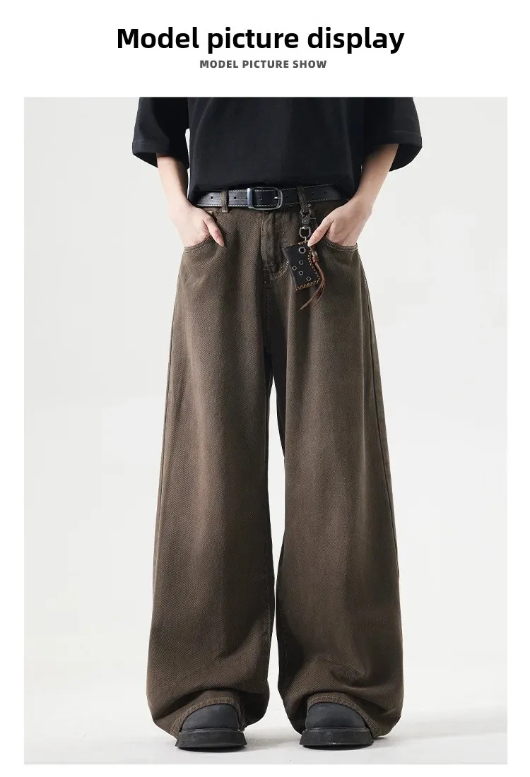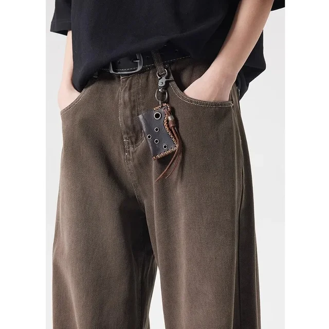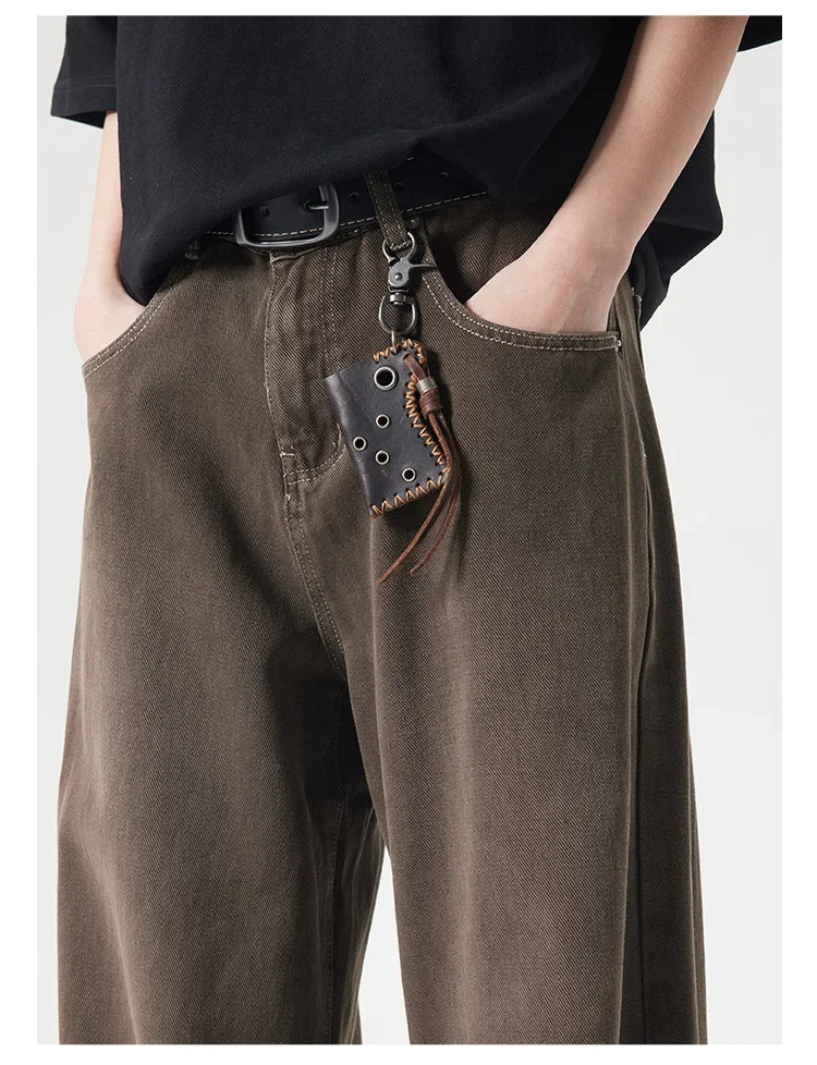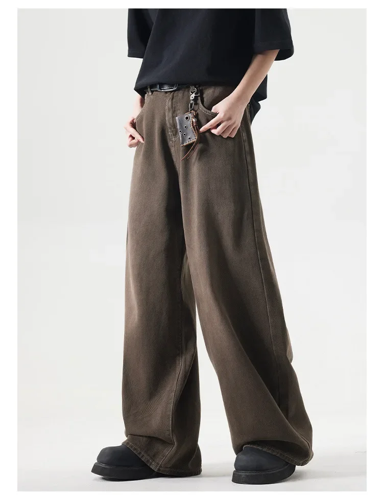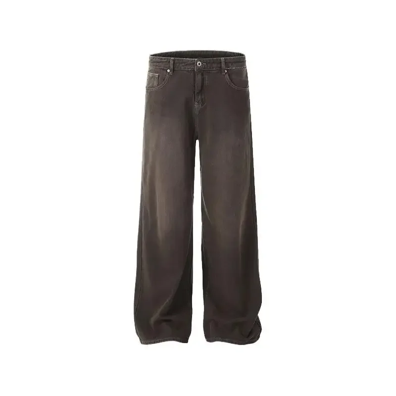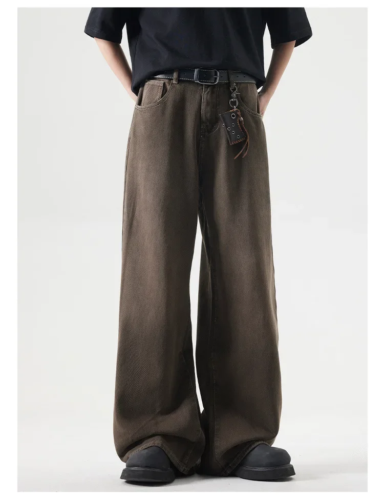 Deep Brown Straight Leg Cleanfit American Vintage Washed Denim Jeans Casual High Rise Loose Fit Men's Jeans Spring Summer