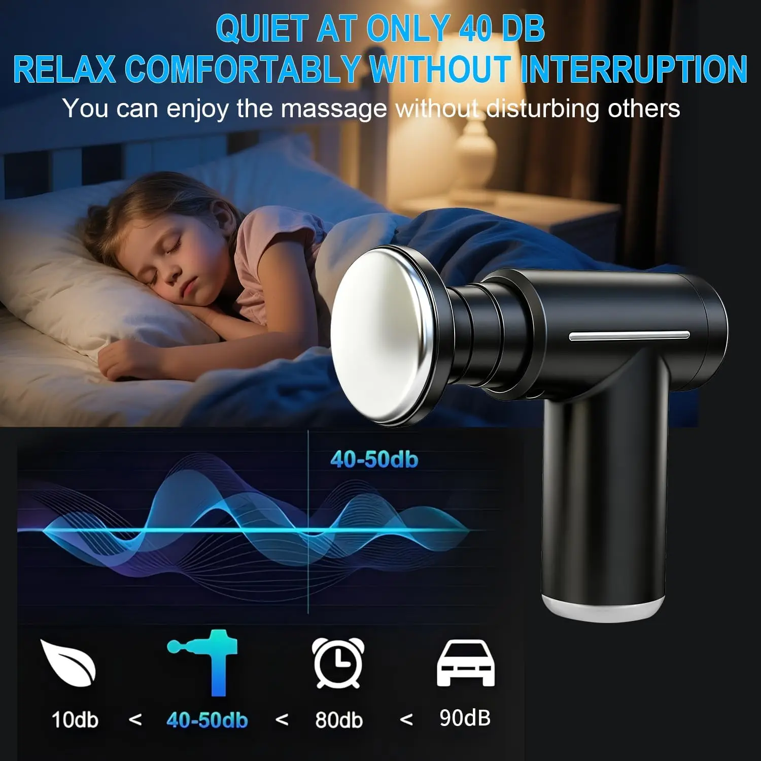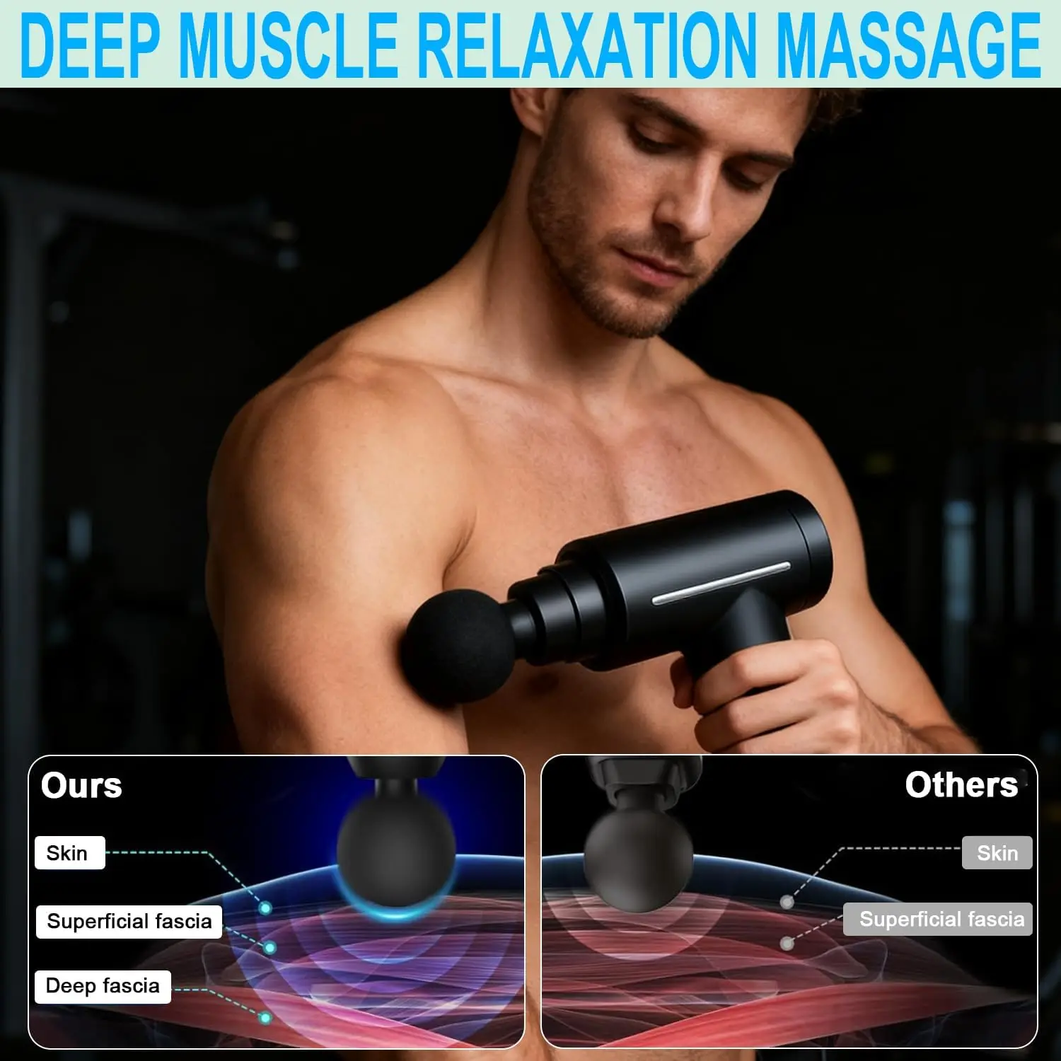 1.【Deep Tissue Relief & Rapid Recovery】Enjoy quick pain relief with powerful percussive therapy that penetrates deep into muscles at 2400-3200 RPM, reducing stiffness, improving circulation, and relieving tension. Whether it’s chronic pain or post-workout soreness, this massage gun triggers myofascial release, enhances recovery, and restores your body’s optimal performance.