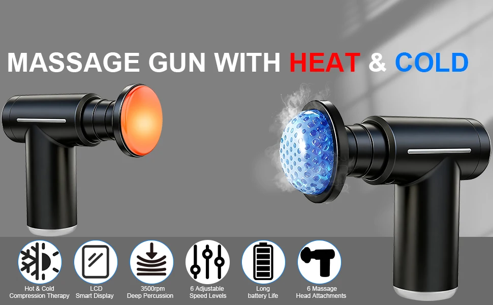 Deep Tissue Massage Gun with Heat Cold 6 Speeds Handheld Percussion Massager Fascia Gun For Body Back Neck Leg Massage Tools