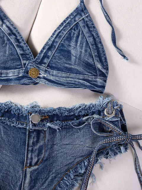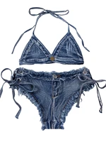 Be the first to review “DEKA Brazilian Denim Bathing Suit Women Suits Bikini Set Lace Up Drawstring Beachwear Solid Summer Vintage”